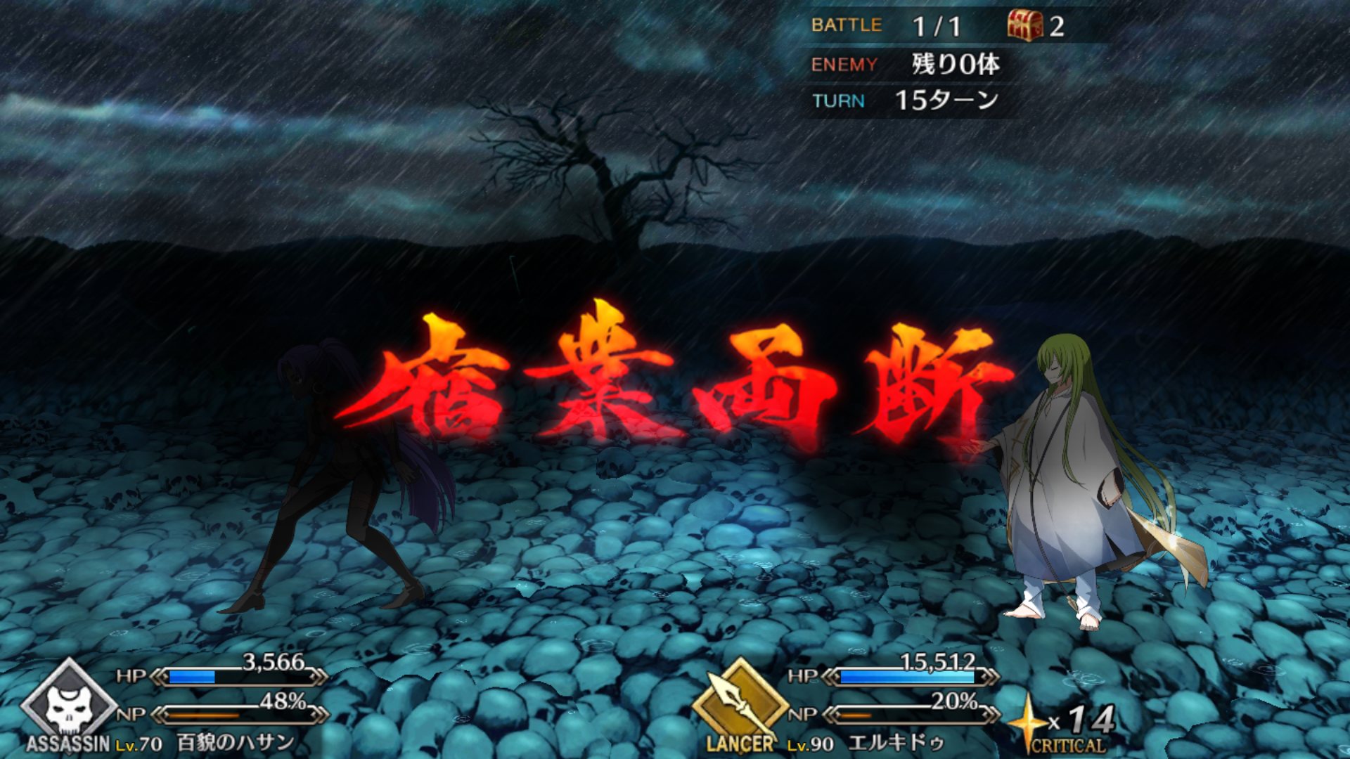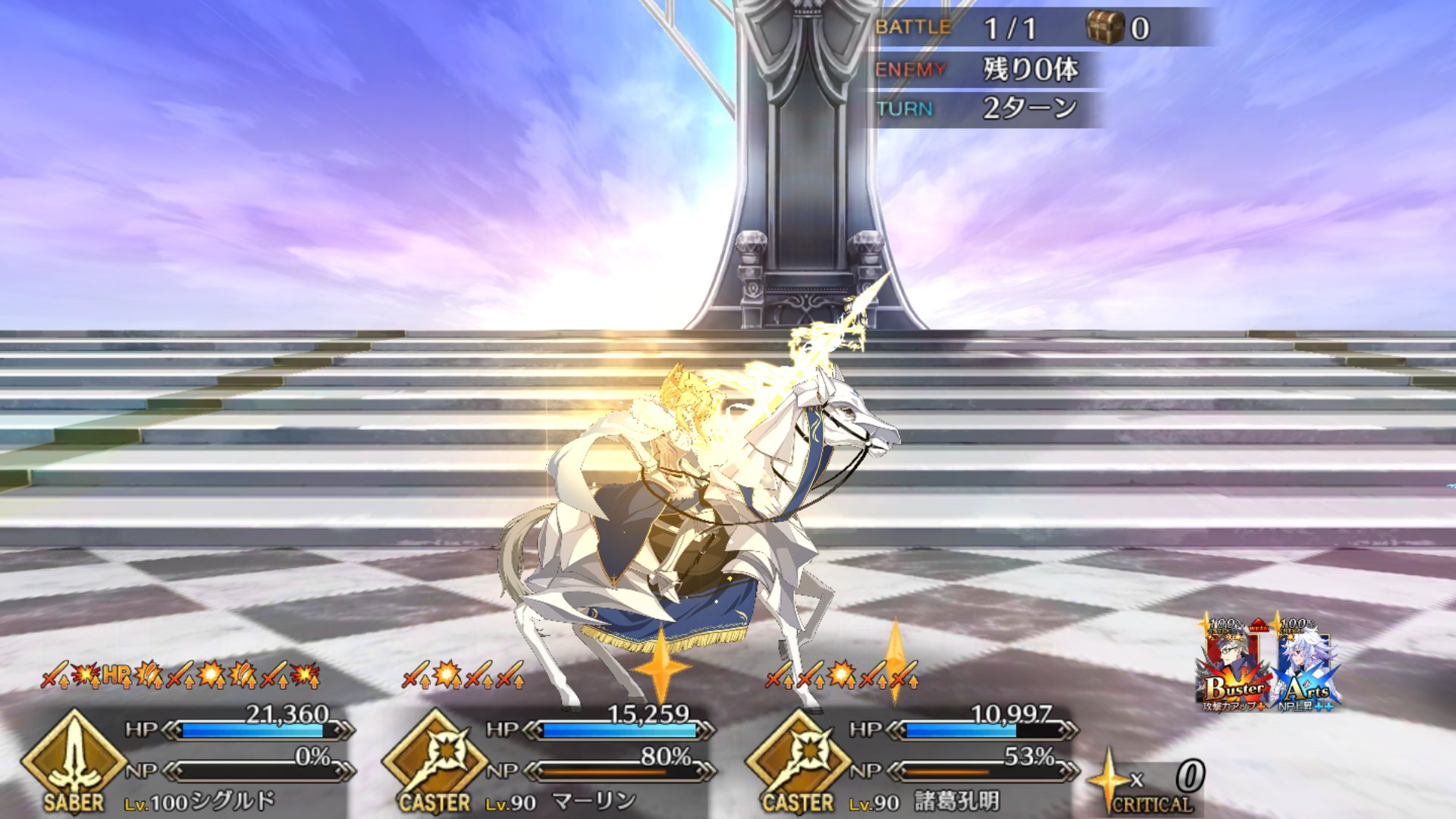 絶体絶命か……!ってところで計ったかのようなタイミングで矢避け復活とかマジ大英雄。メモリアル剣豪クエ挑戦中ワイ