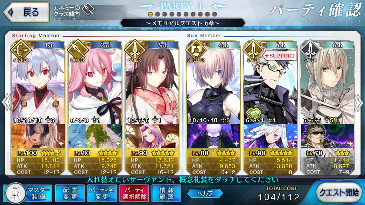 ちなみに編成はこんなんだった。酒呑ちゃん落とすまでに前衛+ゲオル先生はほぼ崩壊したぞ。>>847