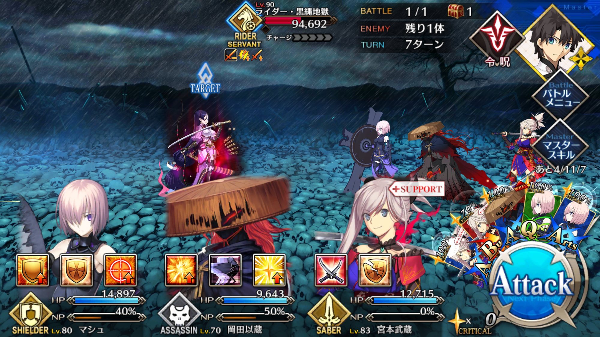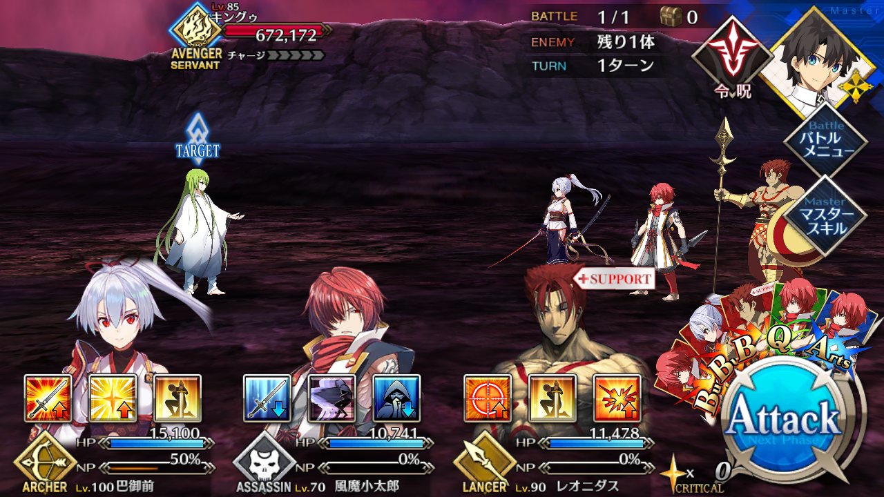 自分は黒聖杯オル田さんをほぼアタッカーにして騎&狂クエクリアした。騎&狂はほぼ後衛でトドメ指してもらう感じだったけど、やっぱり編成制限ある酒呑&頼光さんはきつかったな。酒呑の魅了スキル決まって全員攻撃不可ってなったのきついかったわ・・・。>>66
