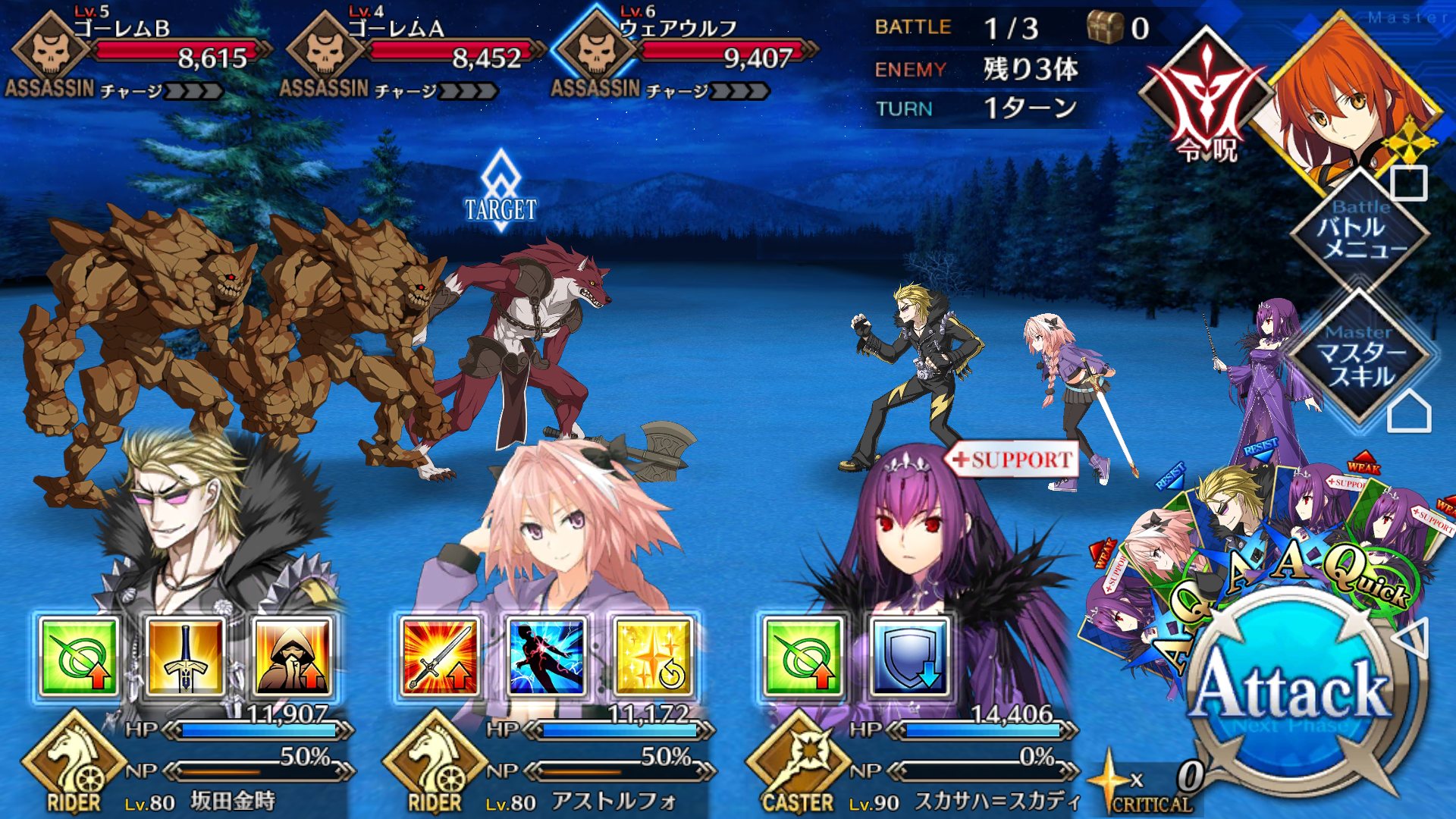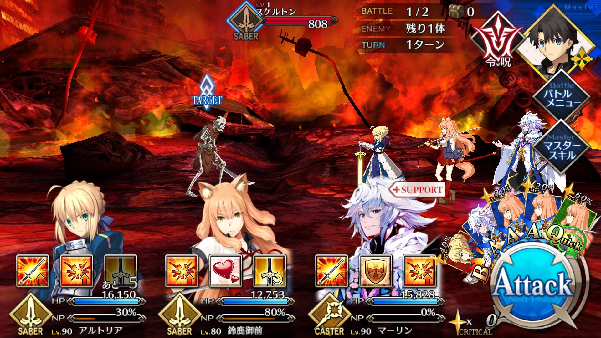 NP50%クリ15%宝具15%の晩餐と選択か