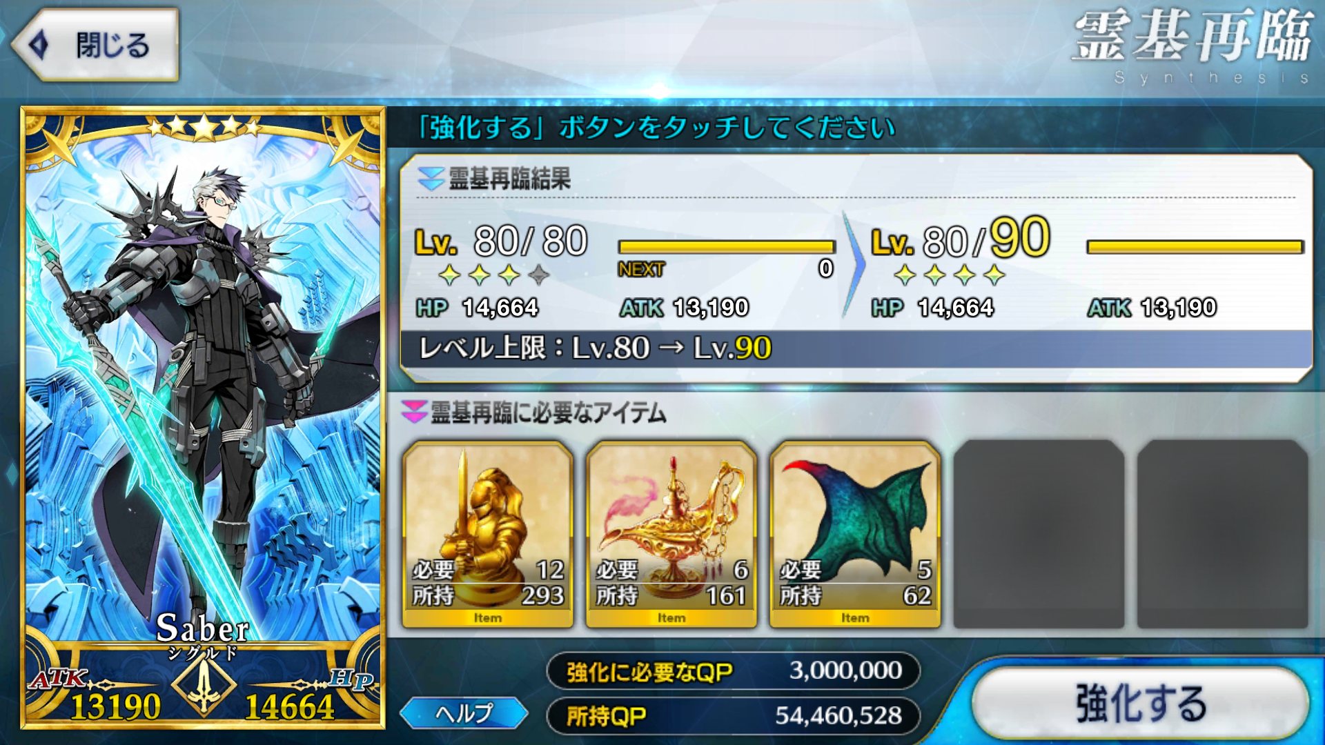 名前も変わりそうセイバーついに強化来たか!おめでとう!