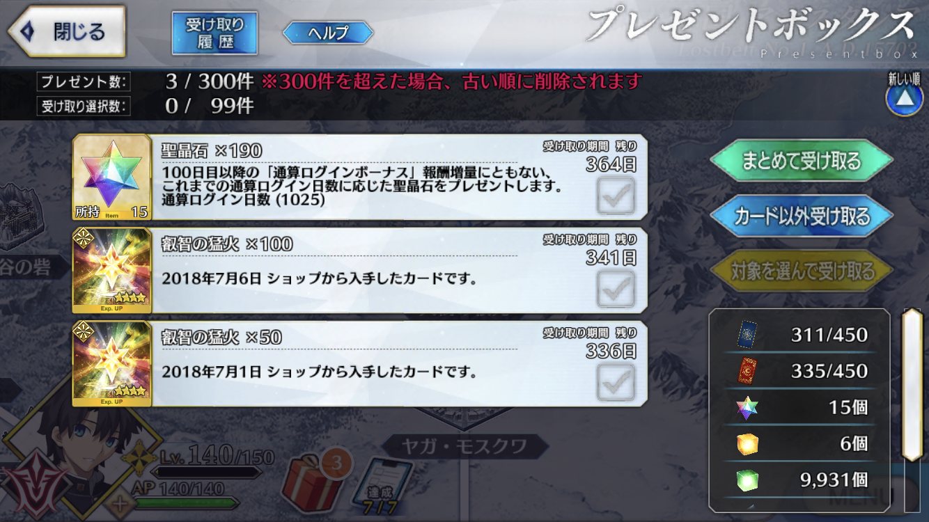 星5礼装3枚