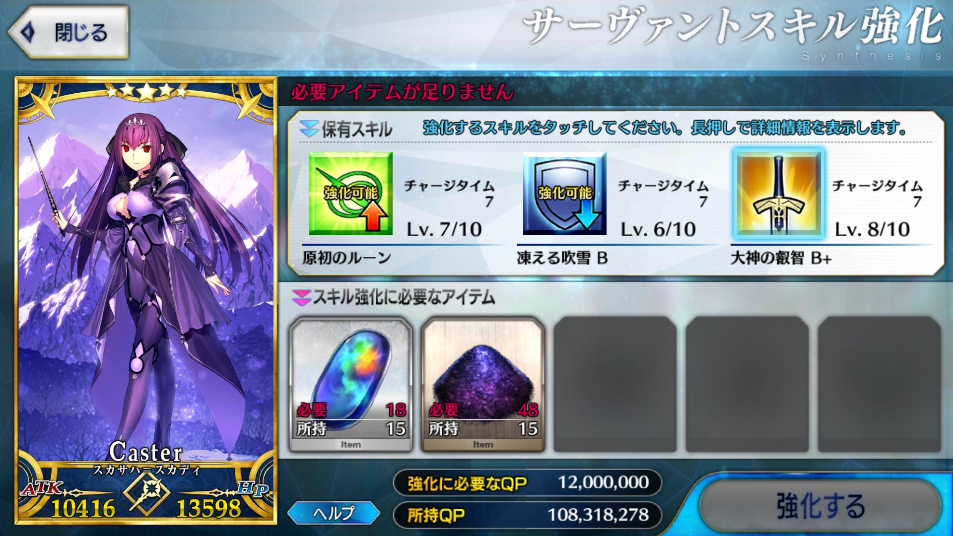 未強化全体クイック宝具、だから強化されてほしい、なぁって。スカディ、師匠なのに可愛すぎ