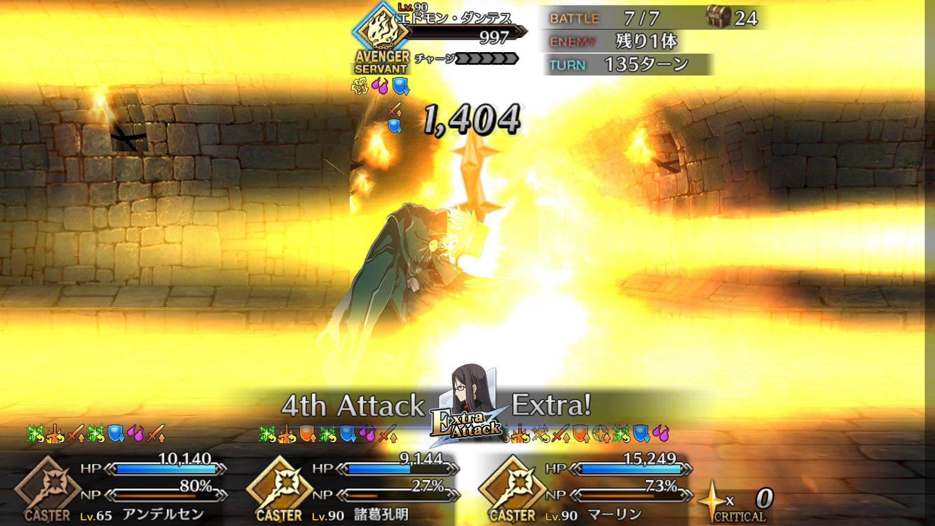 マスタースキルもガッツも心眼も全て使いきって、このターンで倒せなきゃ負けって所のエクストラアタックで倒しきった。そりゃ勿論修正前フィナーレ。