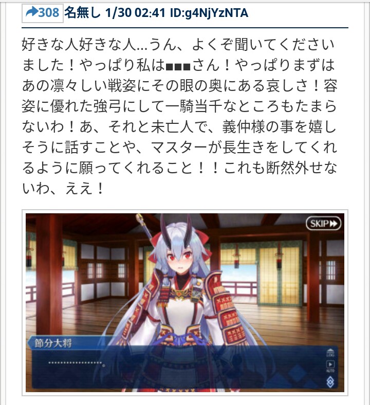 (これで逆に頼光さんでもどちらにせよ金時やマスターや鬼連中の逃げ場が無いなぁ…)>>944