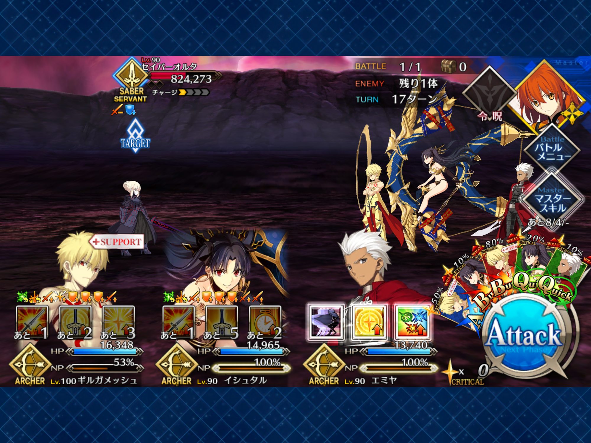 塵、要求量多過ぎんよー(スカディ、スキル8止まり)タマキャなら変化にクラス相性変更でバーサーカー→アルターエゴとか!とか!面白いと思うよ!!