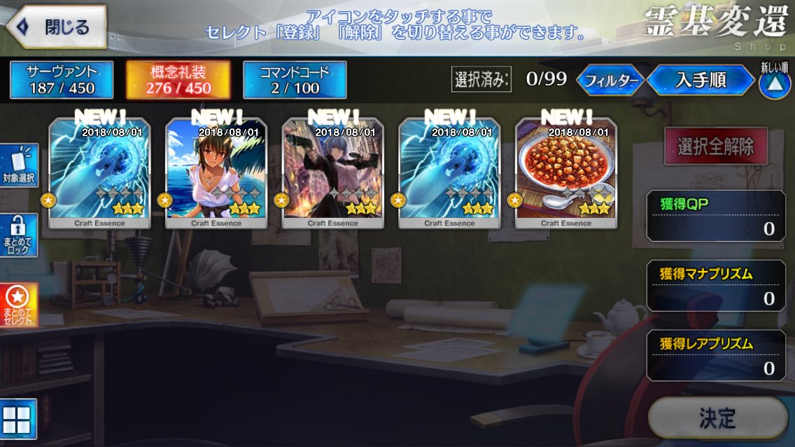 星3礼装が勝手に出てくるんだ!!7月も当たらなかったがそんな話じゃない!