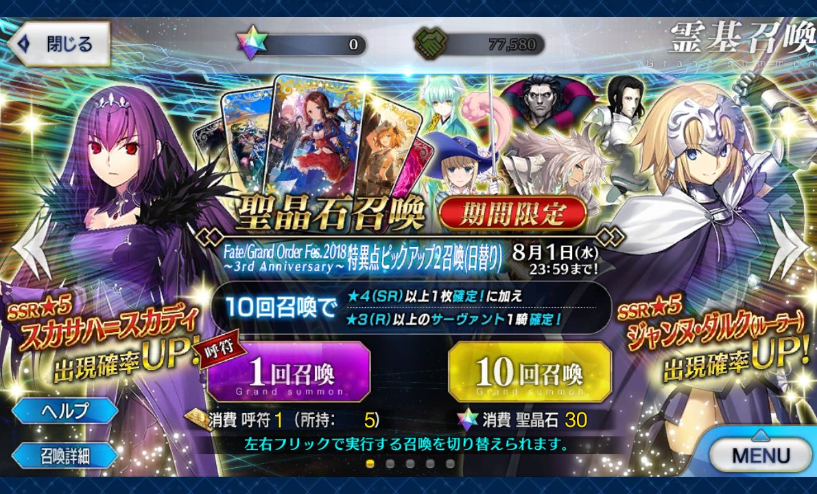 Oh···なら新年の福袋か何かの拍子のピックアップ狙うしかないな。福袋で思い出したけど星5騎が一番当たりは多いのだろうか
