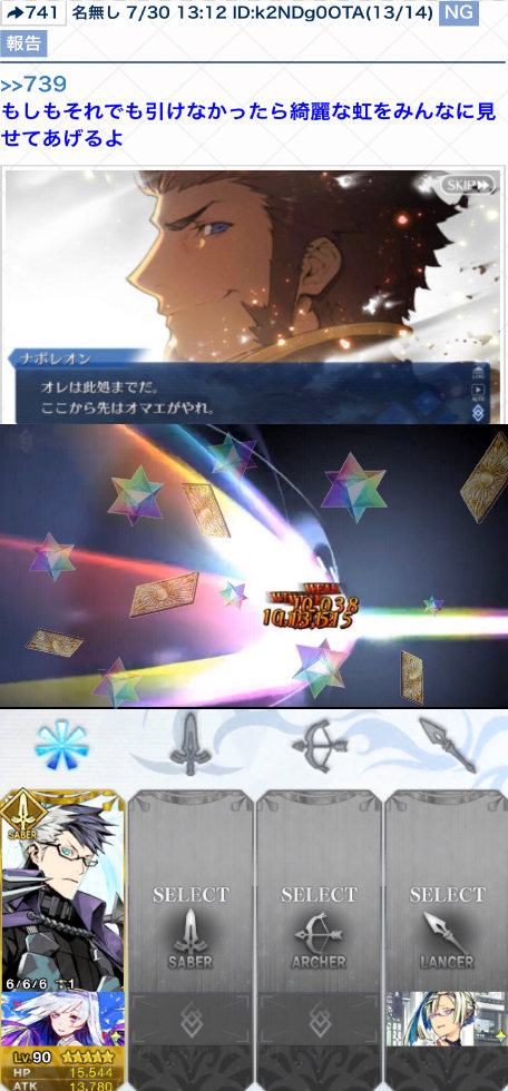 ネタバレ、最終再臨バレに関する話題で書き込むのが躊躇われる場合は下のスレへ。