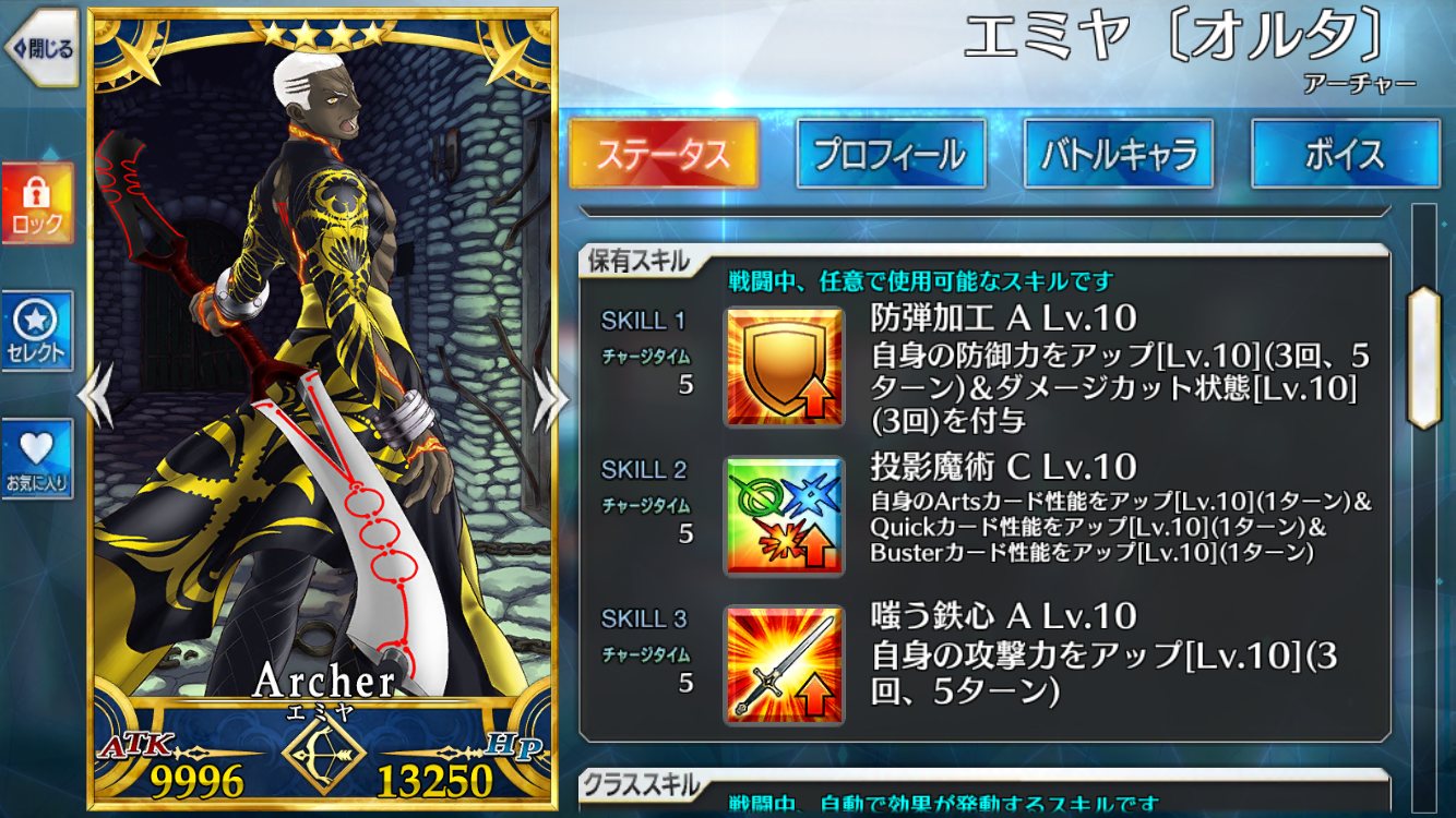 周りにも防御バフを撒く弓アルトリアと自分をダメカなどでがっしり守りながら守るデミヤって感じに使い分けできそうだね。>>860