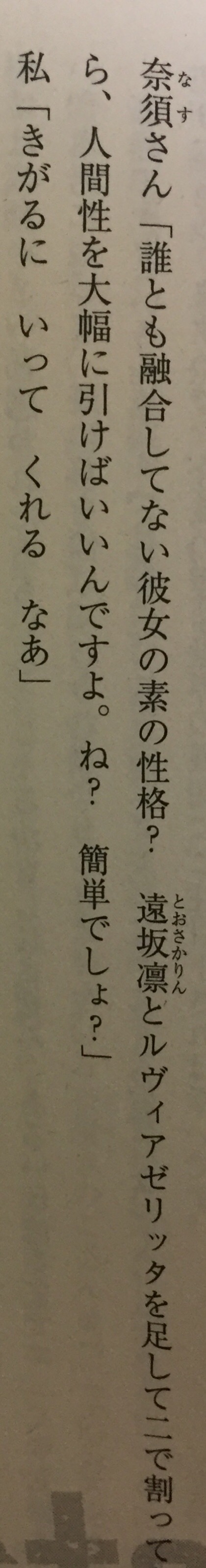 それでさ、気づいたんだけど…メルトリリスってメル「トリ」リスってメルトにもトリって入ってるんだよ?これってお互いのことをトリトリ呼び会えるんだよ?でもトリスタン絶対そんな風に呼ばないよね。それはそうと同じフレーズが名前にあるってこれ実質婚約も同然では…?二人はそういう感じじゃない(語彙力が足りない)ってのは分かるけど良かったねメルト!これでリップよりも先にメルトに王子様が来たよ!たまによくわかんない生き物呼んだり空を飛んだりするけどれっきとした王子様だよ!>>875