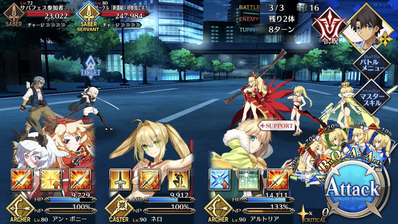 宝具の誠の旗、新撰組召喚からのタコ殴りで多段hit。圧巻のNP回収力である