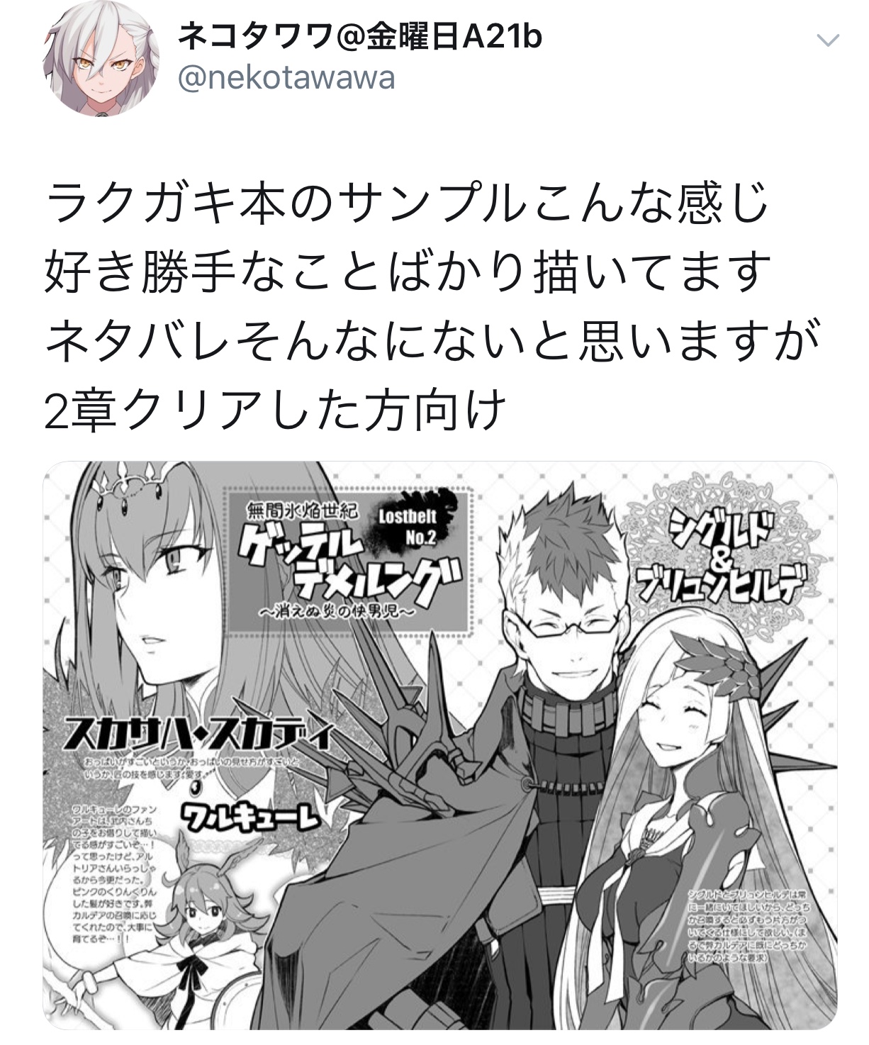 絵の方の四季先生なんて今回の夏コミで水着ノッブ表紙のFGOイラスト集書いてるくらいのFGOプレイヤーだしそちらにも概念礼装を一枚くらい書いてほしい…>>893