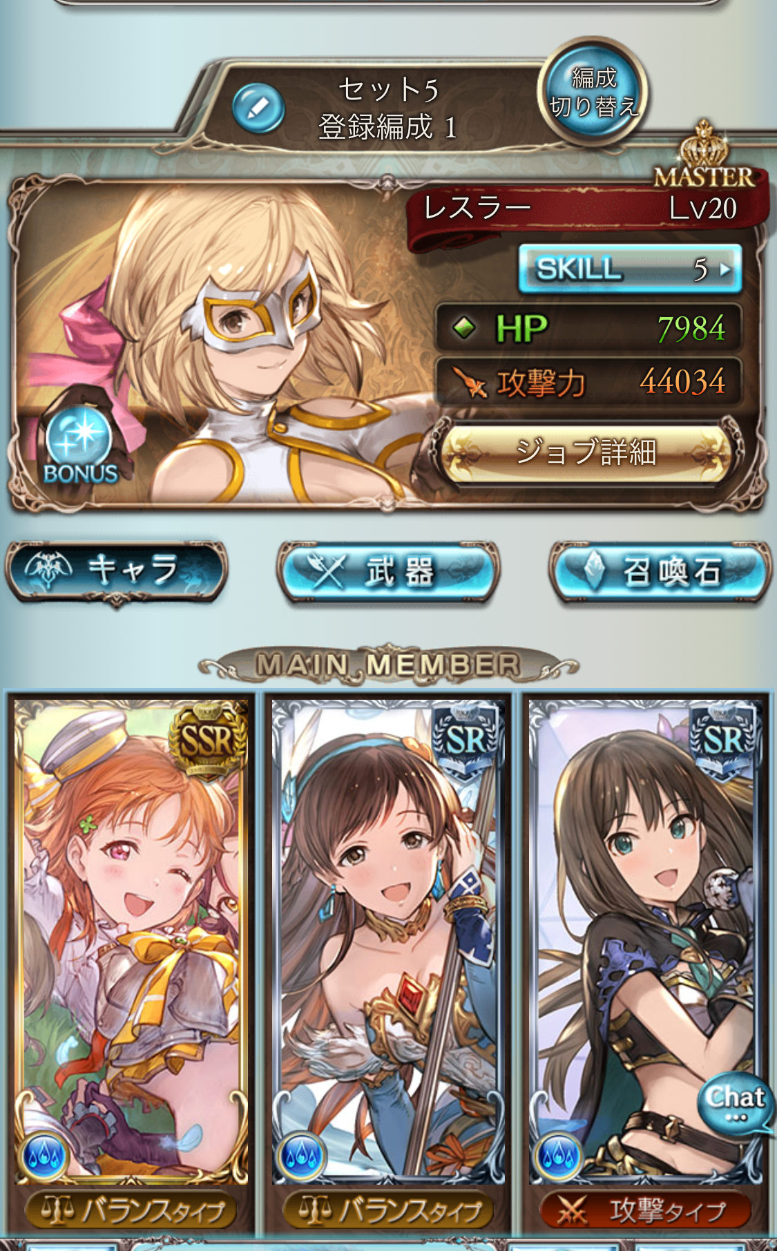 SRだから全般的に効果量が控えめだけど、内容自体は必要とされる物が無駄なく揃ってるからね(クリティカルバフ、属性バフ、DATAバフ、属性防デバフ、累積防デバフ)