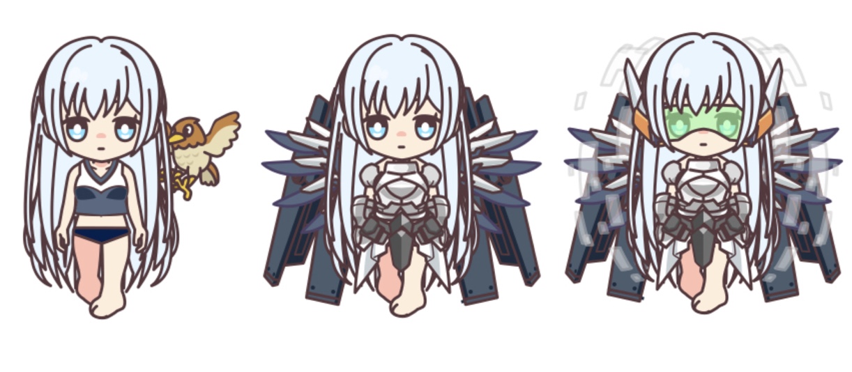 第2再臨:左手に盾、胸にプレートアーマーが追加。また、フードの付いた上着を肩に掛けている