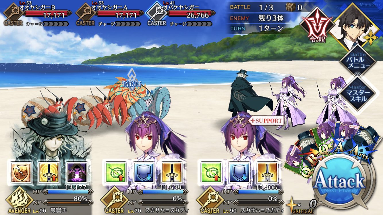 ベリル「屋台から?」敵のスキル凄くめんどくさいけど、何故か仲間に宝具撃てる奴いないのに軍略撃つ人達可愛い。