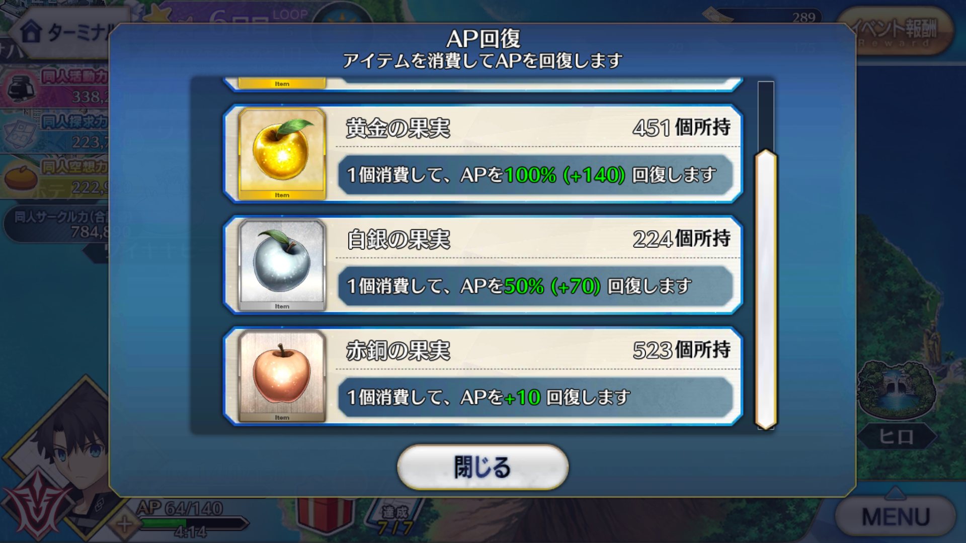 なのでドライブスルーも大丈夫なはず種火が…と思ったが銅林檎がまだそれなりに残ってるからある程度はいけるな