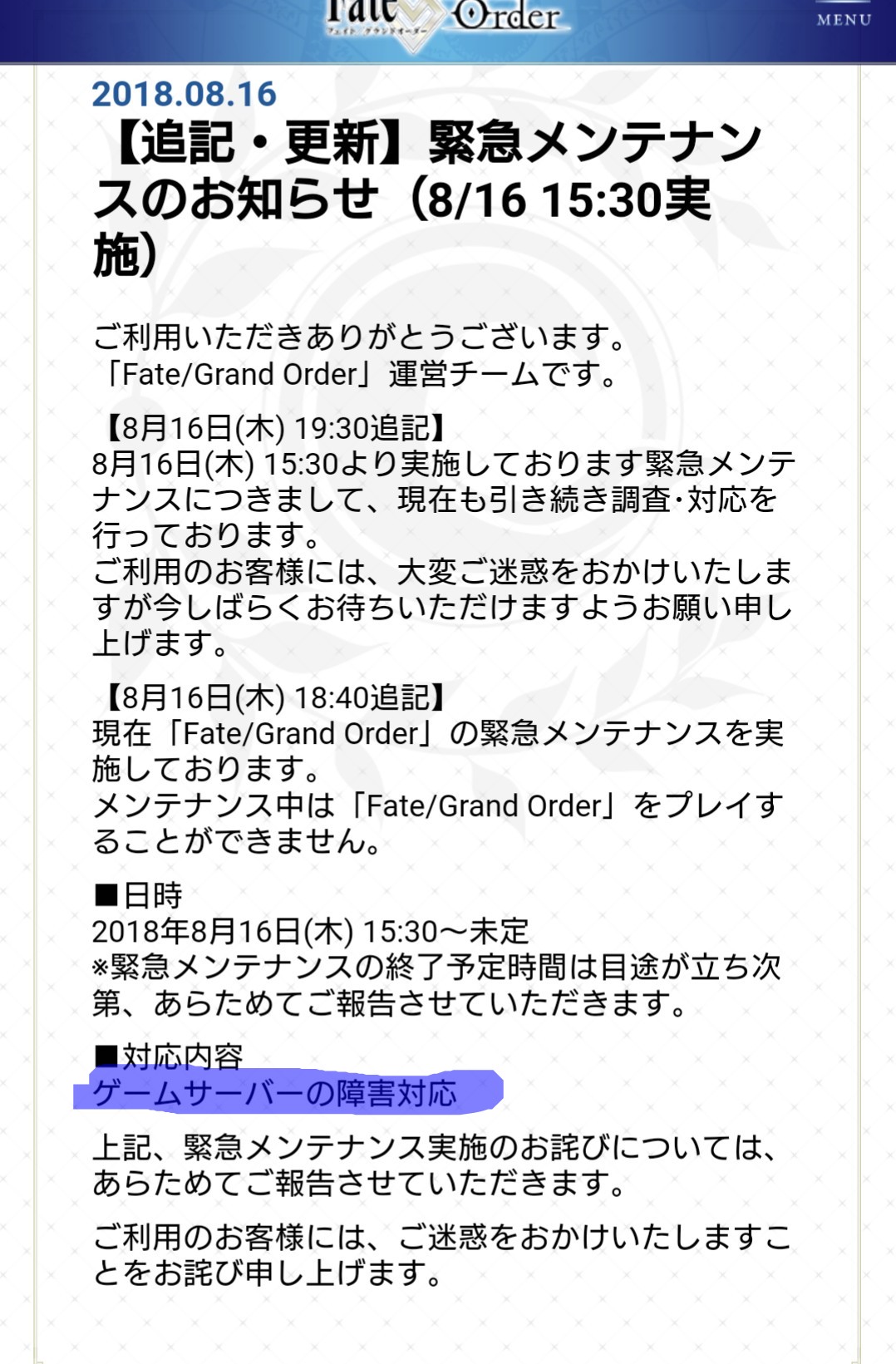開いたってそりゃあログインできないしそう言えば過去に行われた絆クエストとか全幕間とかハントクエとかのクエストが復活するバグが起きたらしい(見かけだけで挑戦はできない)
