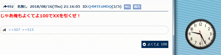 909がガチャ引くってさ!スレが終わるまでによくてよが50いったならメンテナンスもちょうど終わる