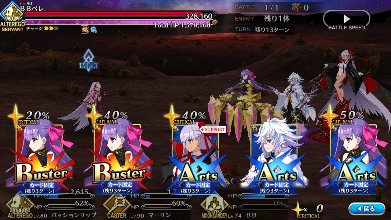 パーティの軸として出ずっぱりの星4と良いタイミングにオダチェンで引っ張り出される星5同士で喧嘩しそうXXもBBちゃんも無理だった……
