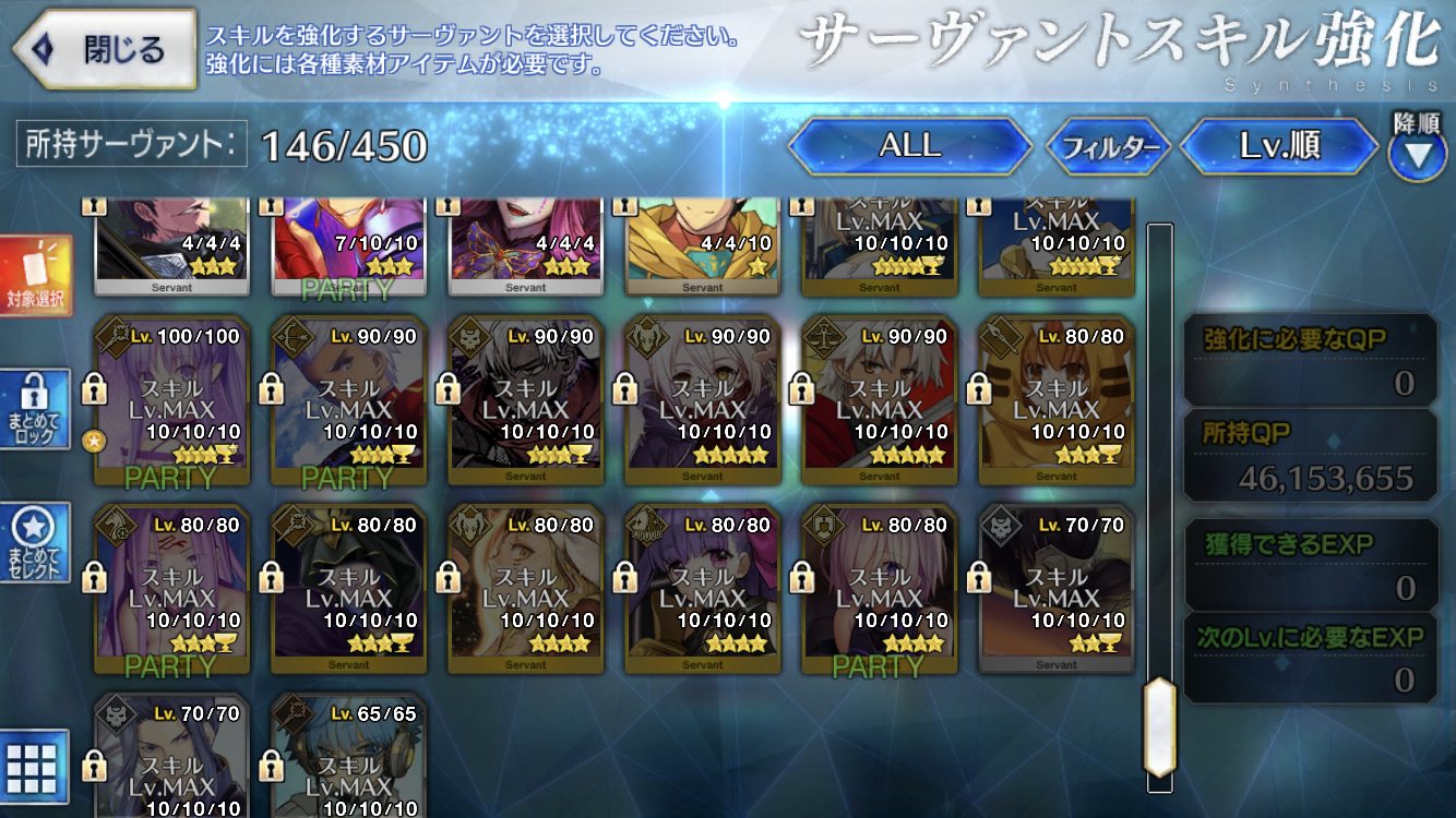 サポ欄(=それなり以上にお気に入り)とかその他趣味のキャラとかもスキル10は多いんだけど。それでもなぁ…>>72