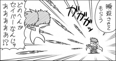 俺のとこも前半殺のスプリガン蹴散らしてからの後半騎のスプリガンから鋭い前蹴りを食らって華麗にバッグステップ(撤退)してストーリーと完全一致して笑ったわ>>944