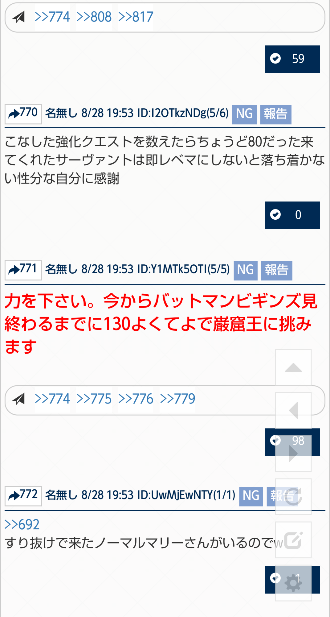 ネタバレ、最終再臨バレに関する話題で書き込むのが躊躇われる場合は下のスレへ。