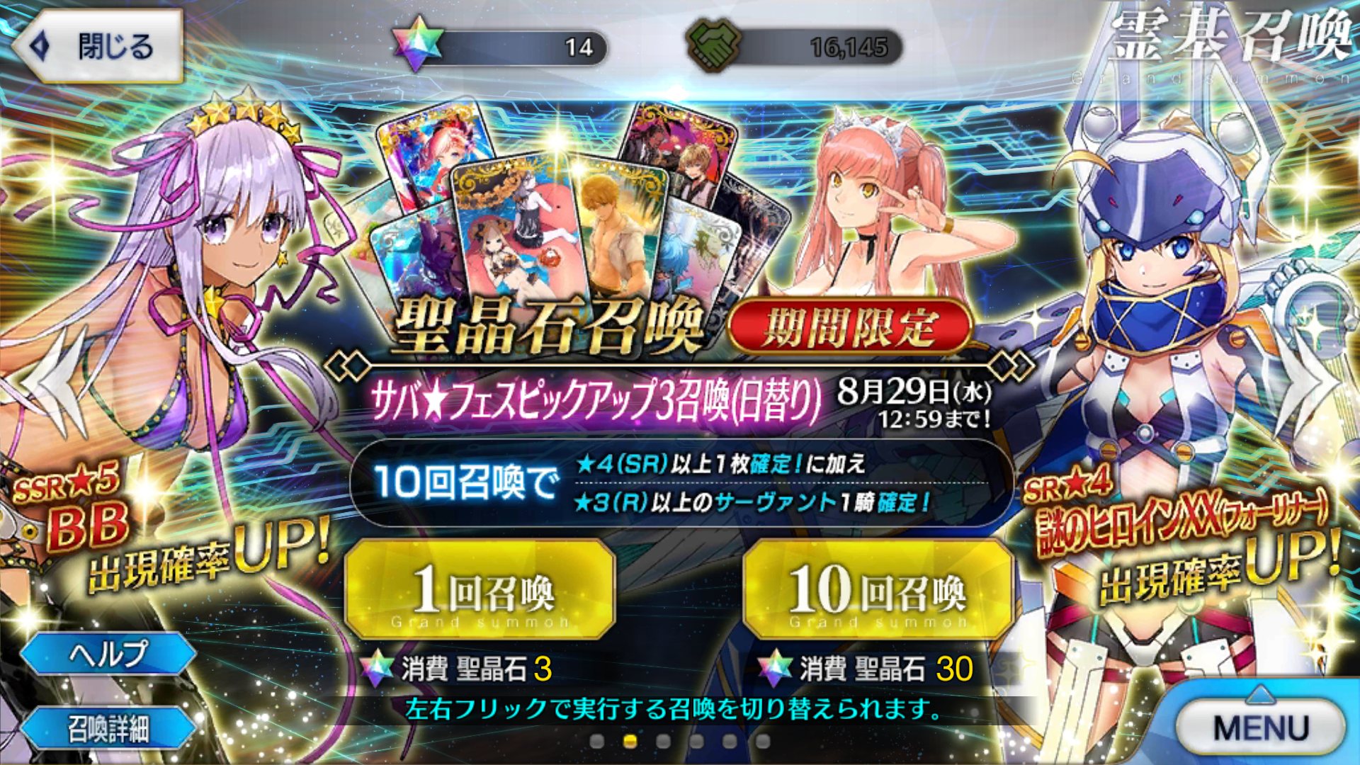 1000なら水着BBちゃんラストチャレンジ。