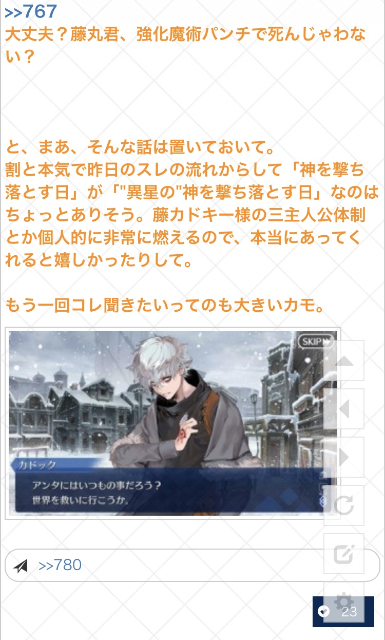 ネタバレ、最終再臨バレに関する話題で書き込むのが躊躇われる場合は下のスレへ。