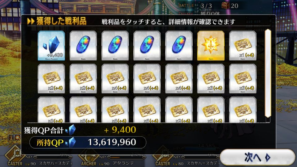 ここ1、2週間はずっとスカディ用の塵48個の回収に勤しんでたわネロ祭見込んでマナプリもQPも使い込んでしまったわ