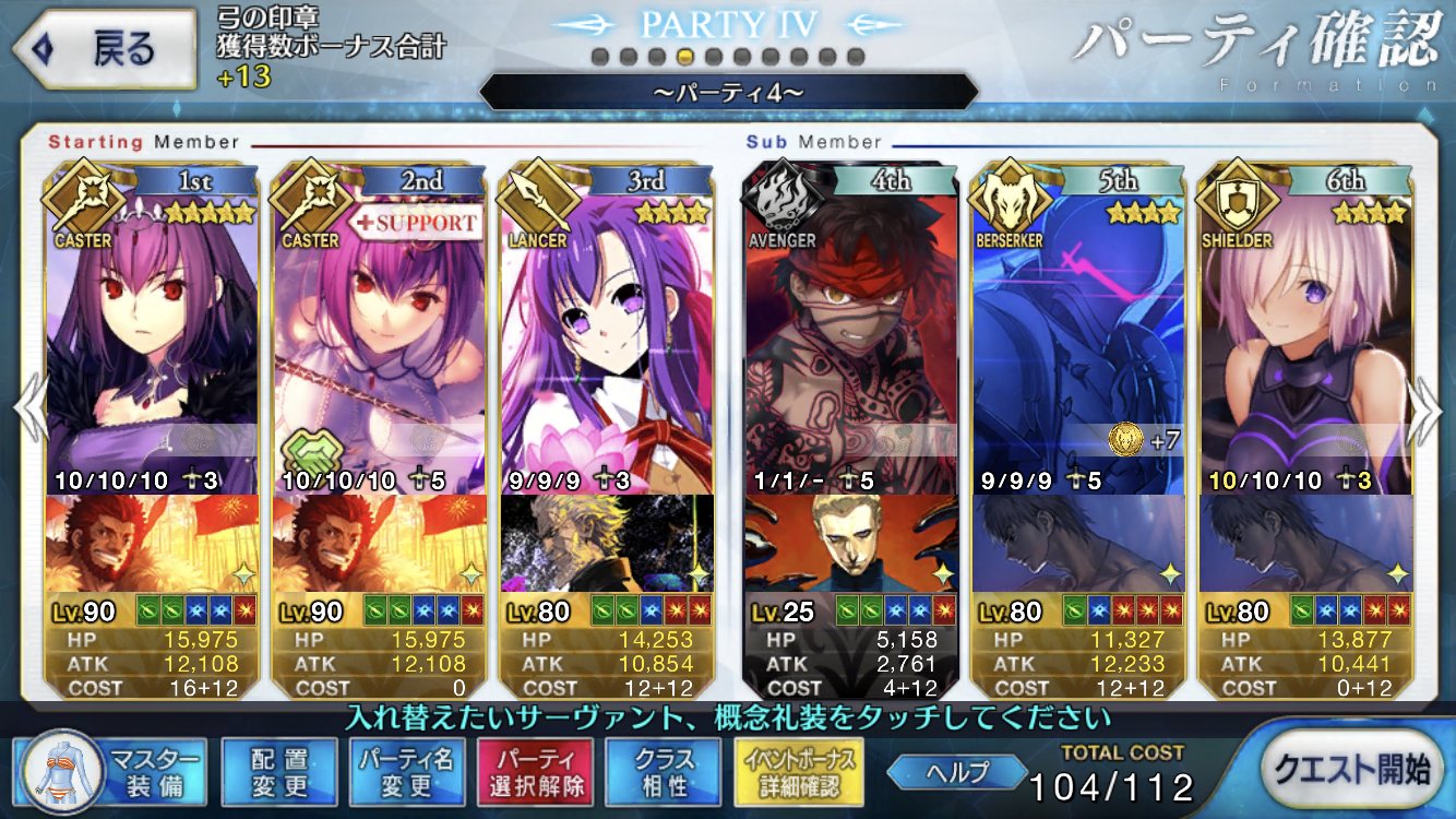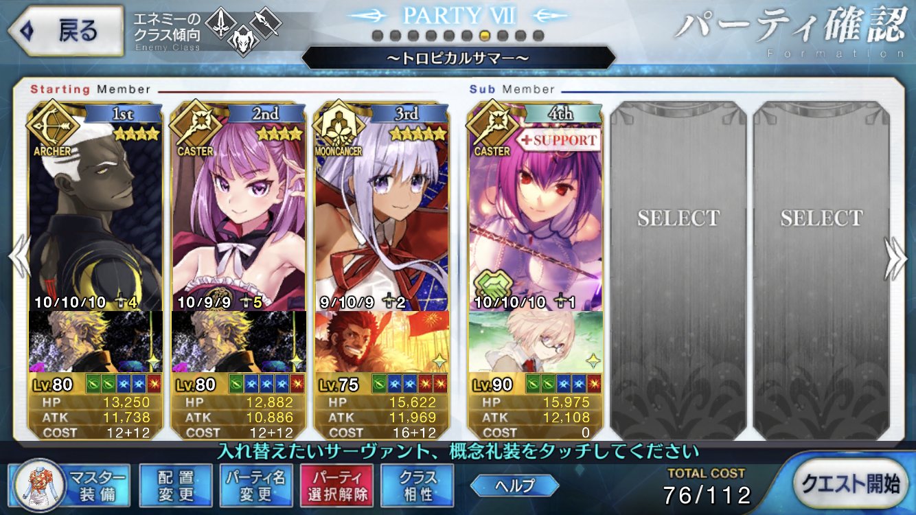 後は鯖によってランダム設定したりお気に入りの再臨に固定したりあえてメンツを変えたりするなステラー!
