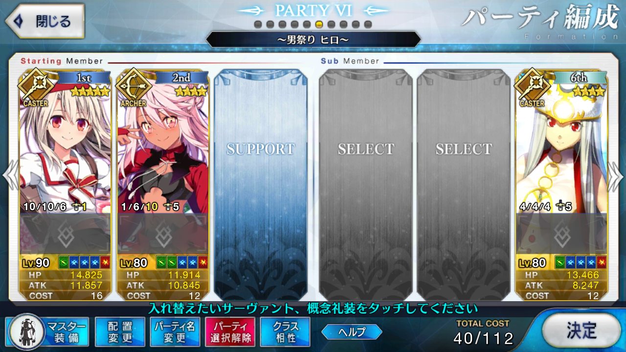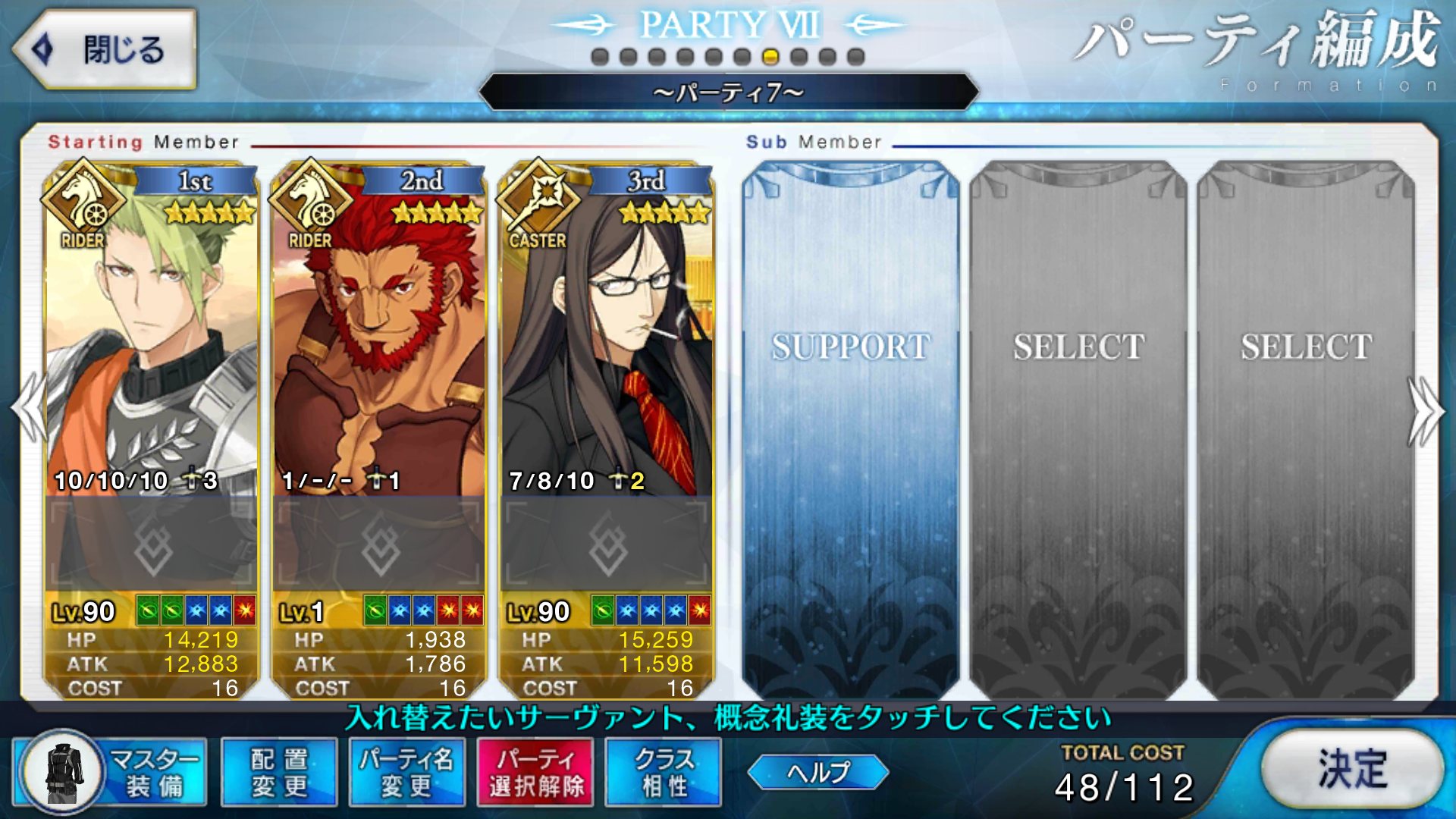 (赤、黄色、青(槍だと緑)の綺麗な三色コーデはオーズ感ある)このイベント中に孔明の絆が上がってしまうのか………(現在絆7)