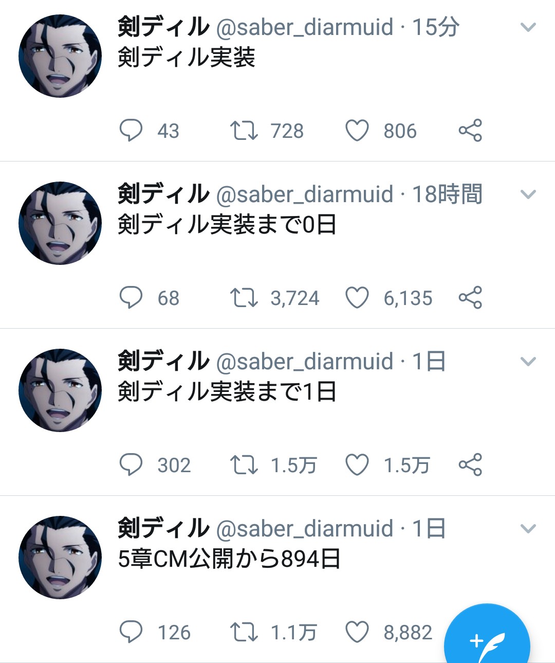 レアプリが帰ってきても☆4は帰ってこないのよ!剣ディルの顔のどっかで見たような感でモヤモヤしてたけど自己解決した