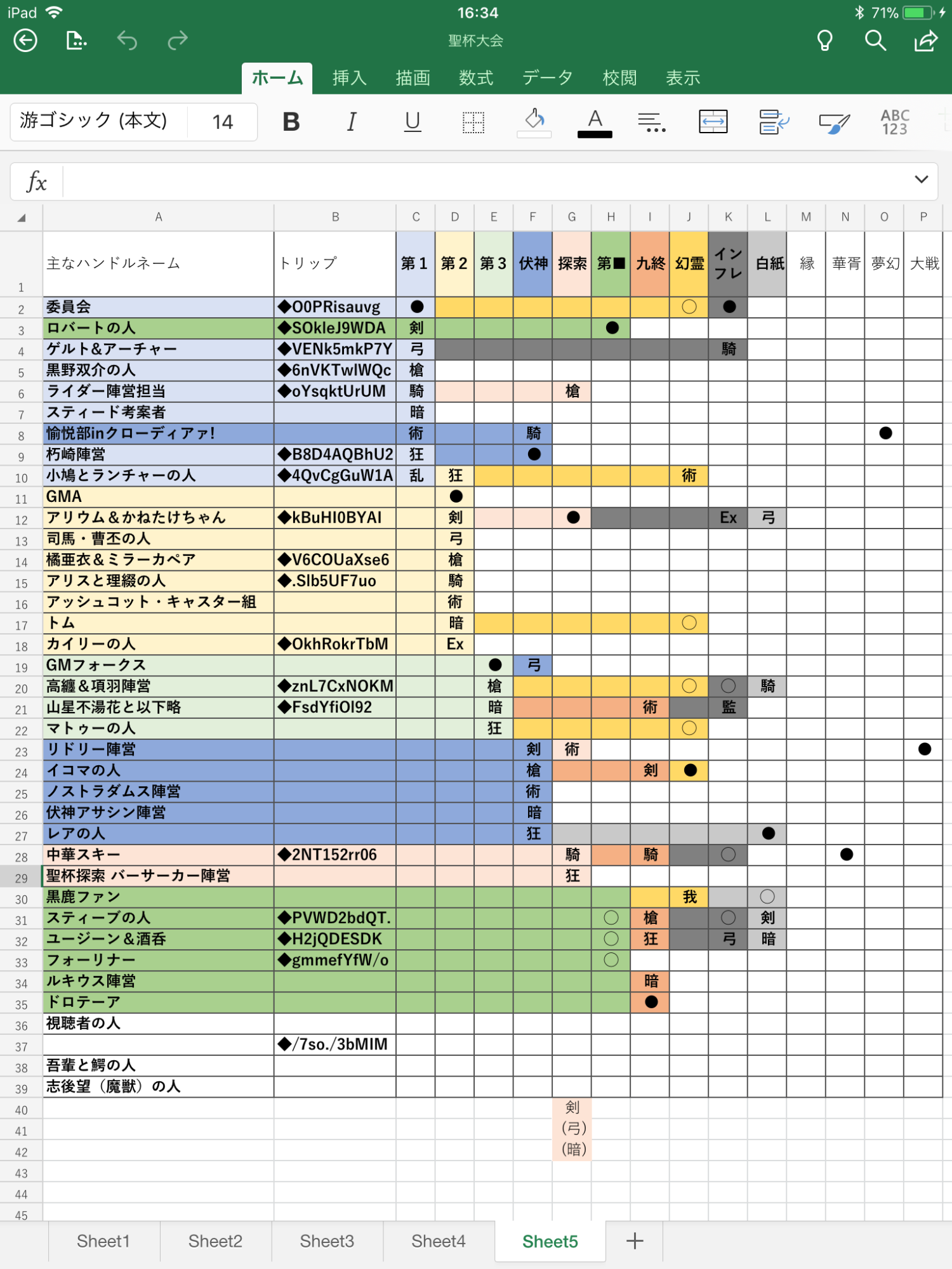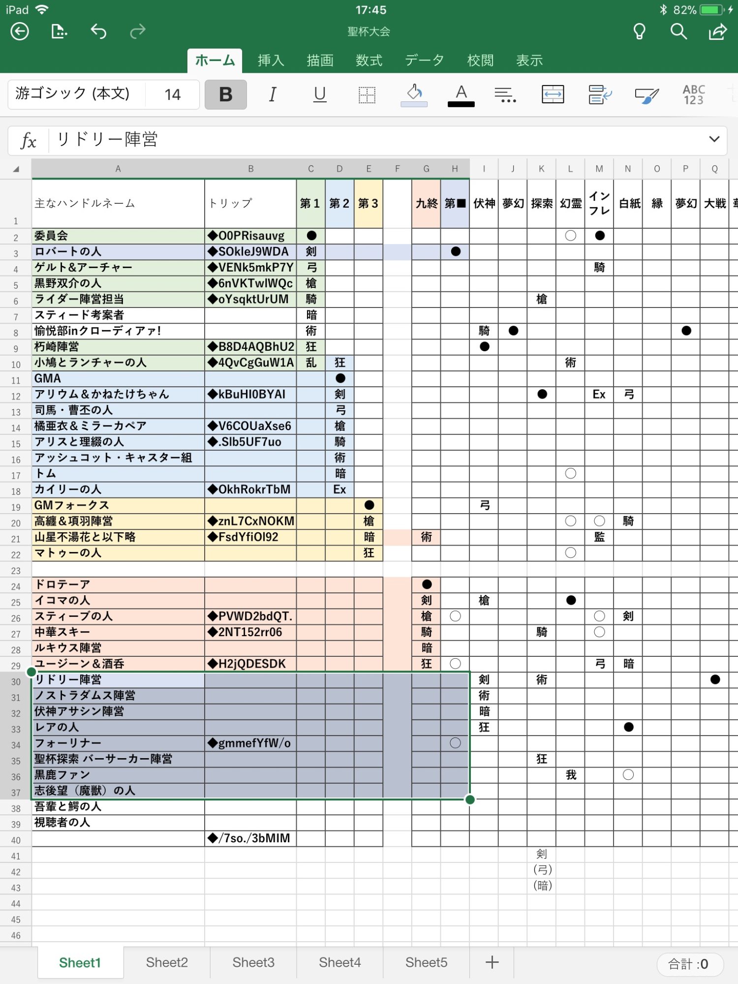 最初はリレー参加者、参加希望者の予定管理と思って全員書き出す必要ないとは思ってたんですが何回目からの更新からか変わってる、そういやザミエルさん入ってないしあわわわわ