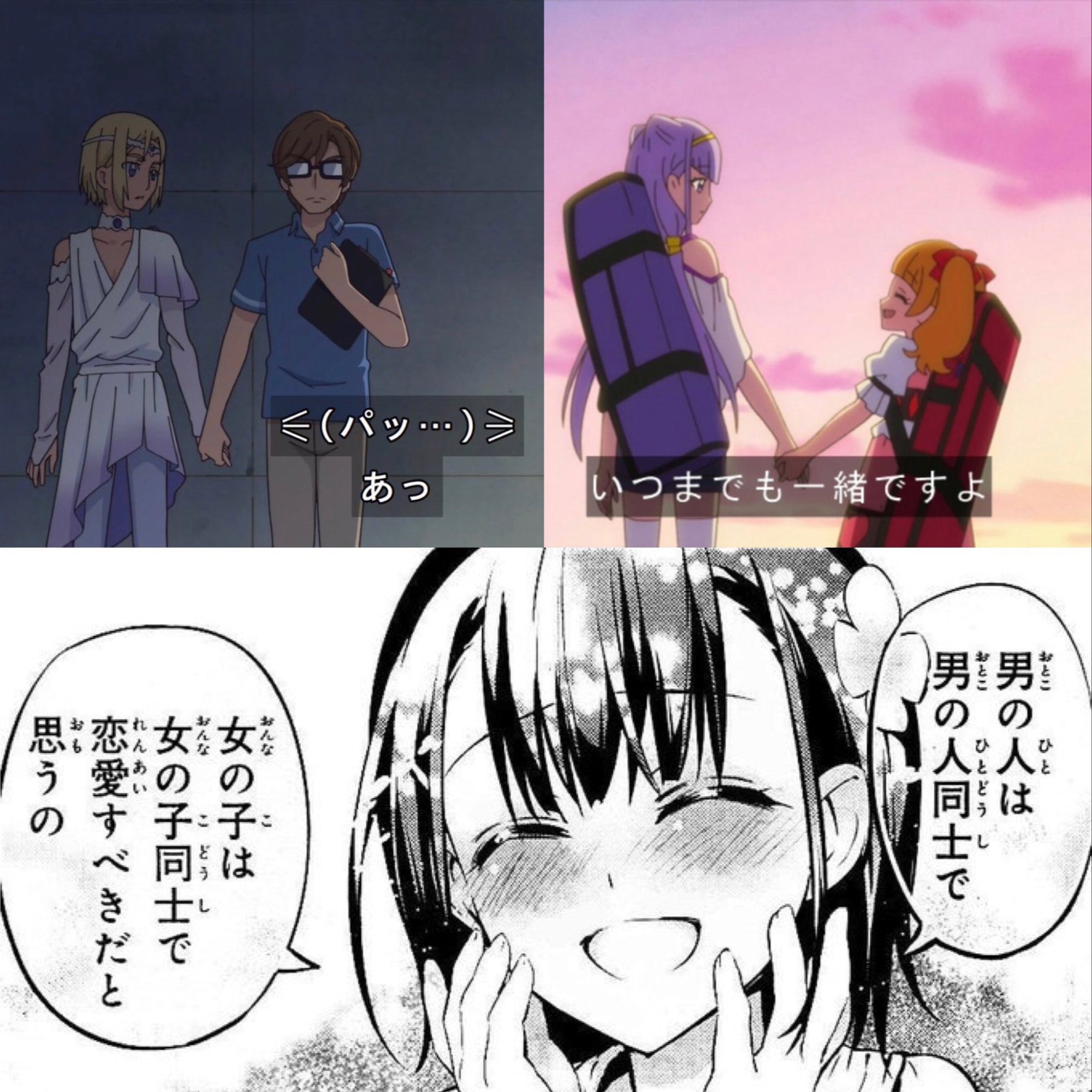 「正義は暴力を振るう理由にはならないけど暴力を振るうためにかざされるのが正義」ってのは聞いた。ガトーが言ってた人間が人間を裁くために作ったのが『神』であるようにその神をバックにつけることで自分達の行動は正しいのだと正当性をつけるのが正義よ。ケモ化TSかつ中身は爺さんでライバル店のマスコットから襲われる受け属性も完備したキャラがきらら作品にいるらしい