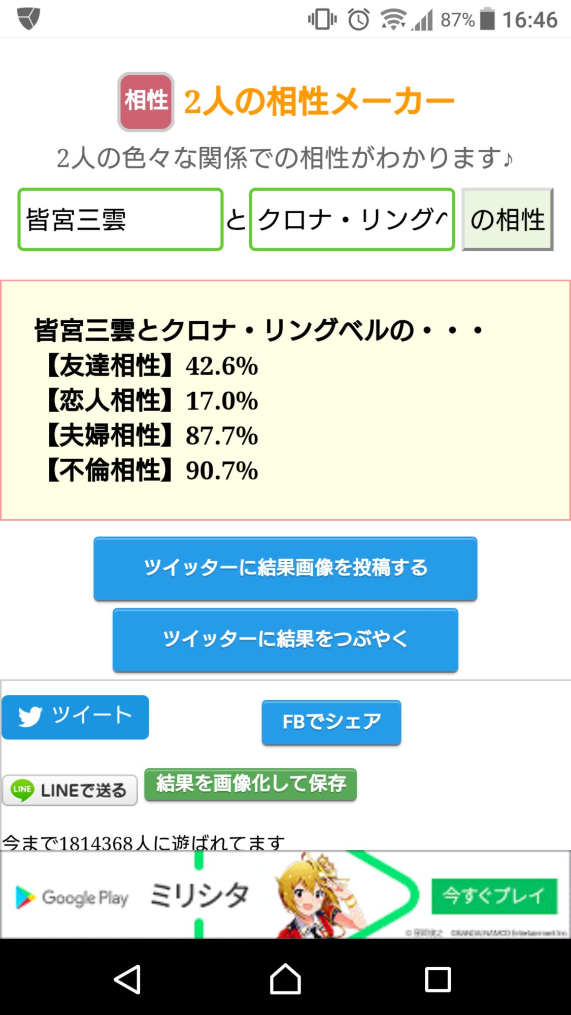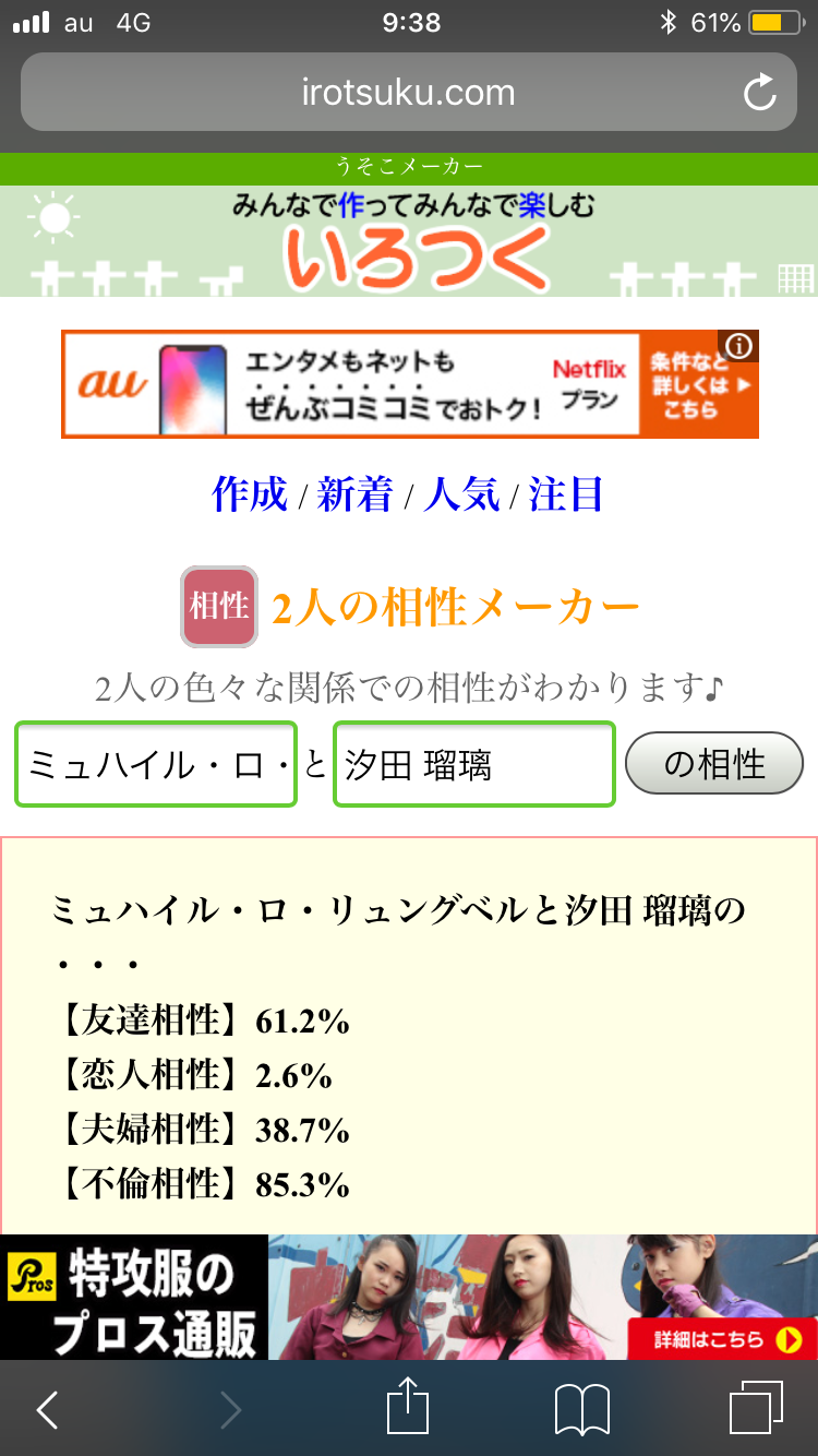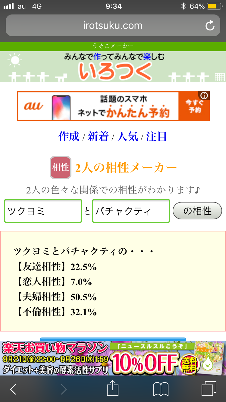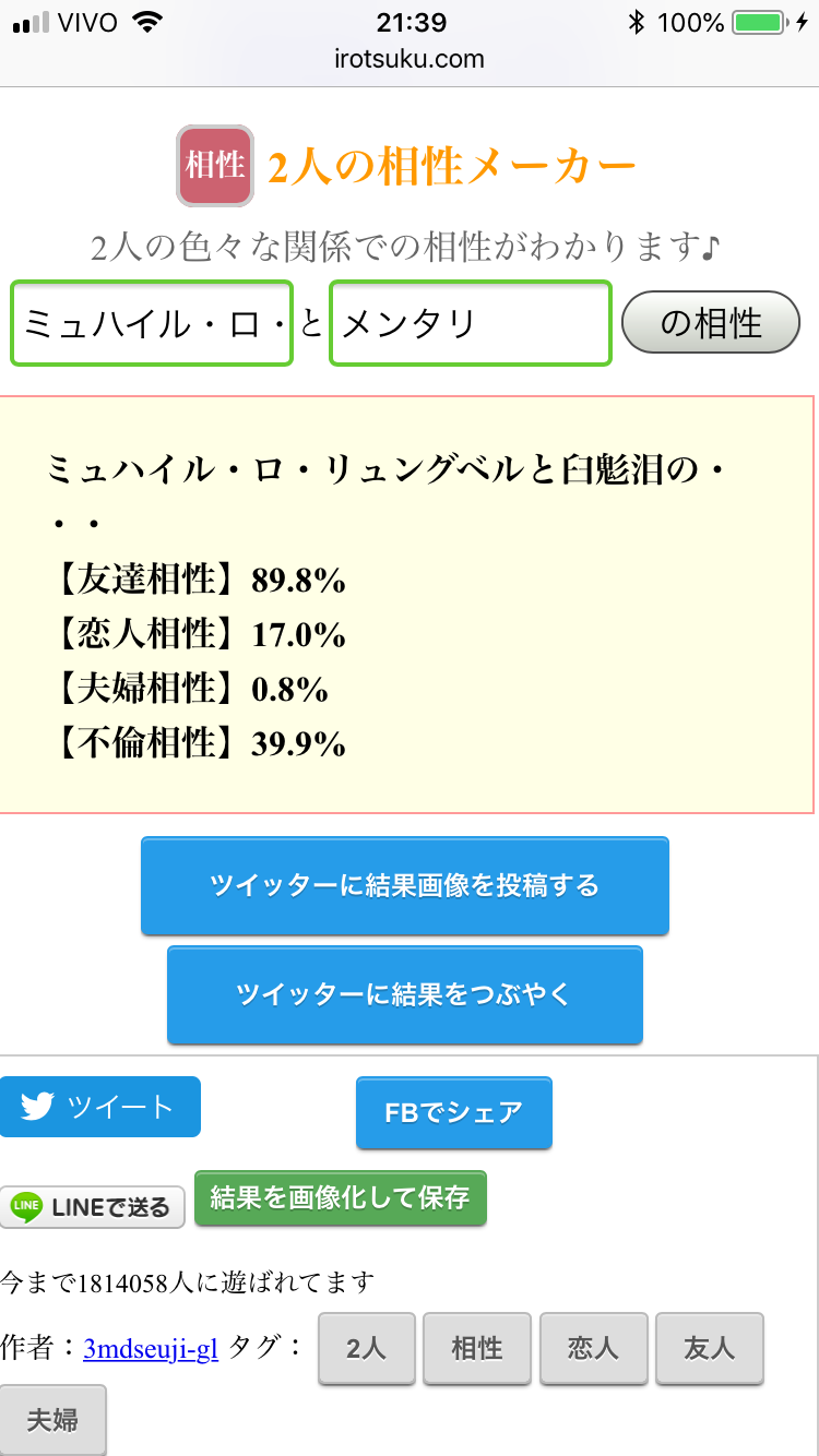 好機……!将七を布教する絶好の好機……!うちの子と政宗ちゃんでやったら不倫相性ぶっちぎりになりました(白目)