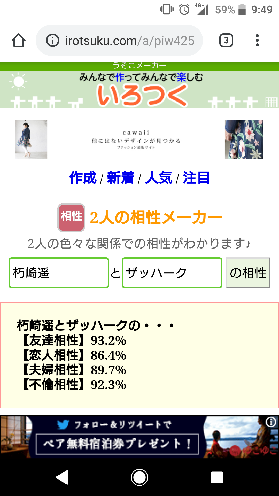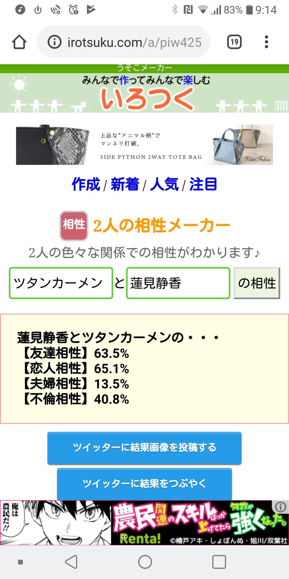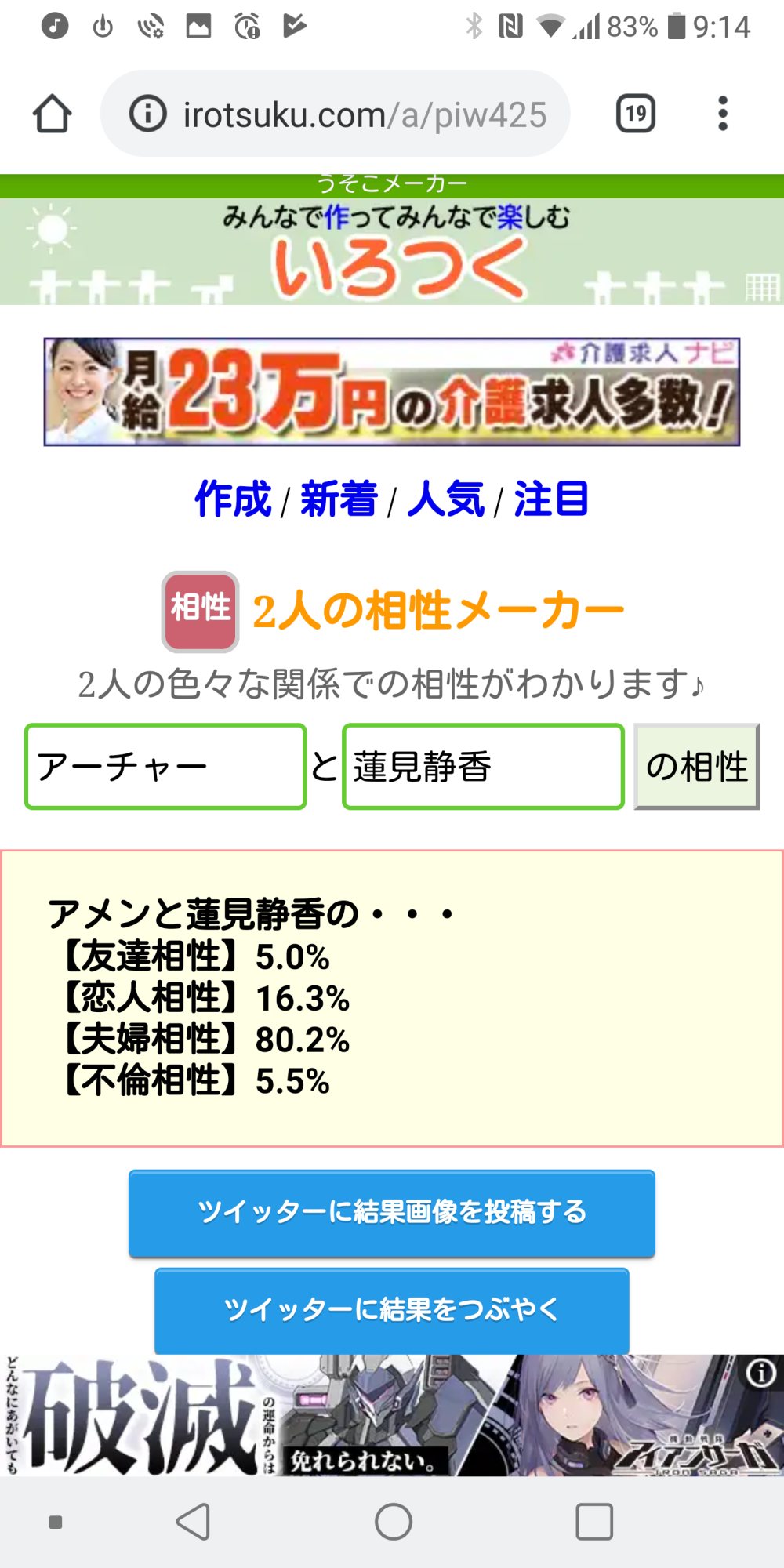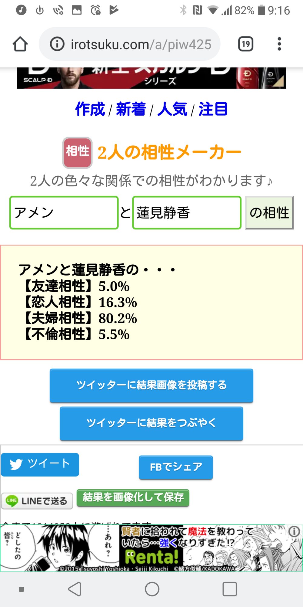 好機……!将七を布教する絶好の好機……!うちの子と政宗ちゃんでやったら不倫相性ぶっちぎりになりました(白目)
