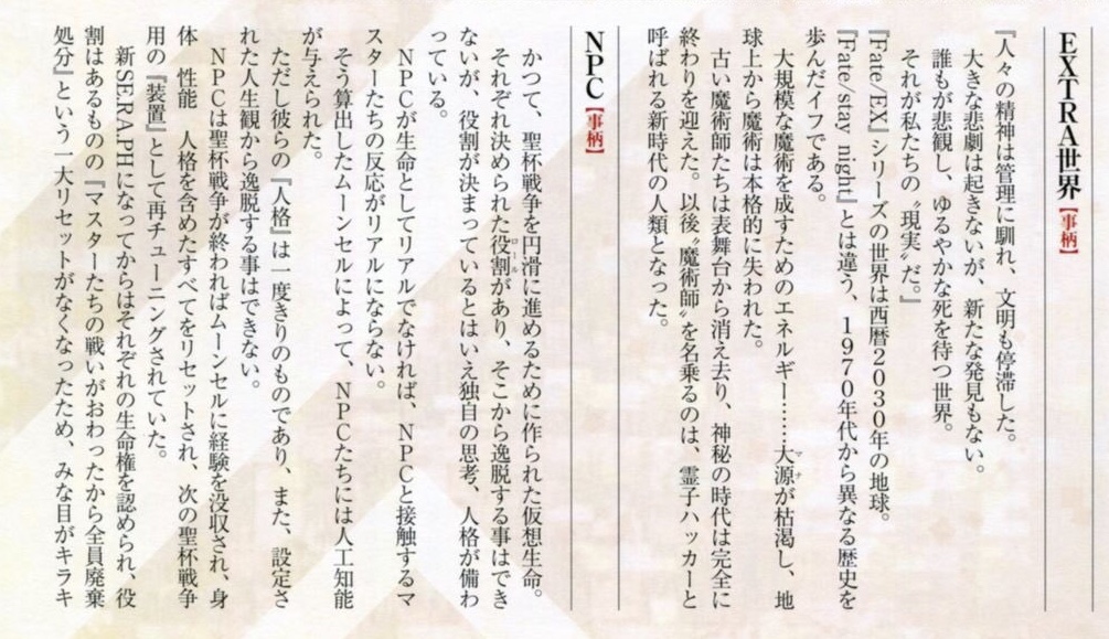 相容れぬ信念も、理解できない美醜も、嫌悪の対象にならない。(Fate/EXTRAmaterial)