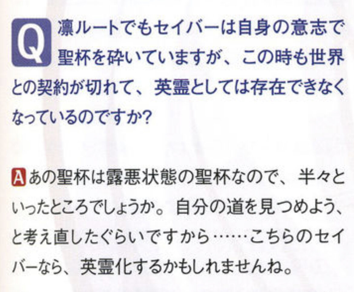 一応上のコメントはちょっと間違っててUBWルートでは英霊化の可能性が示唆されてる