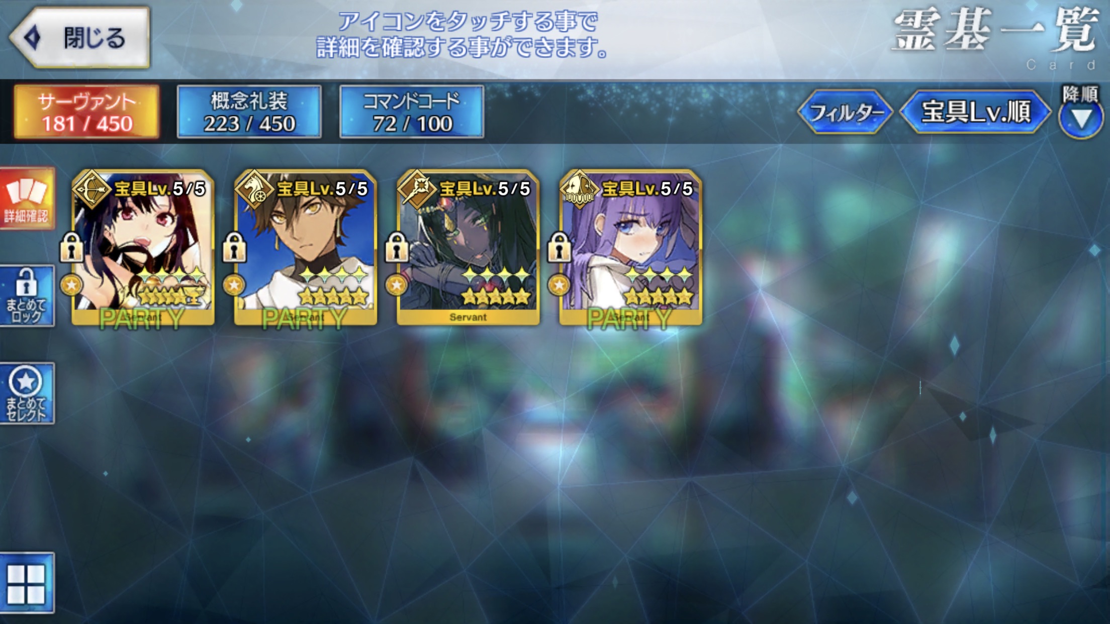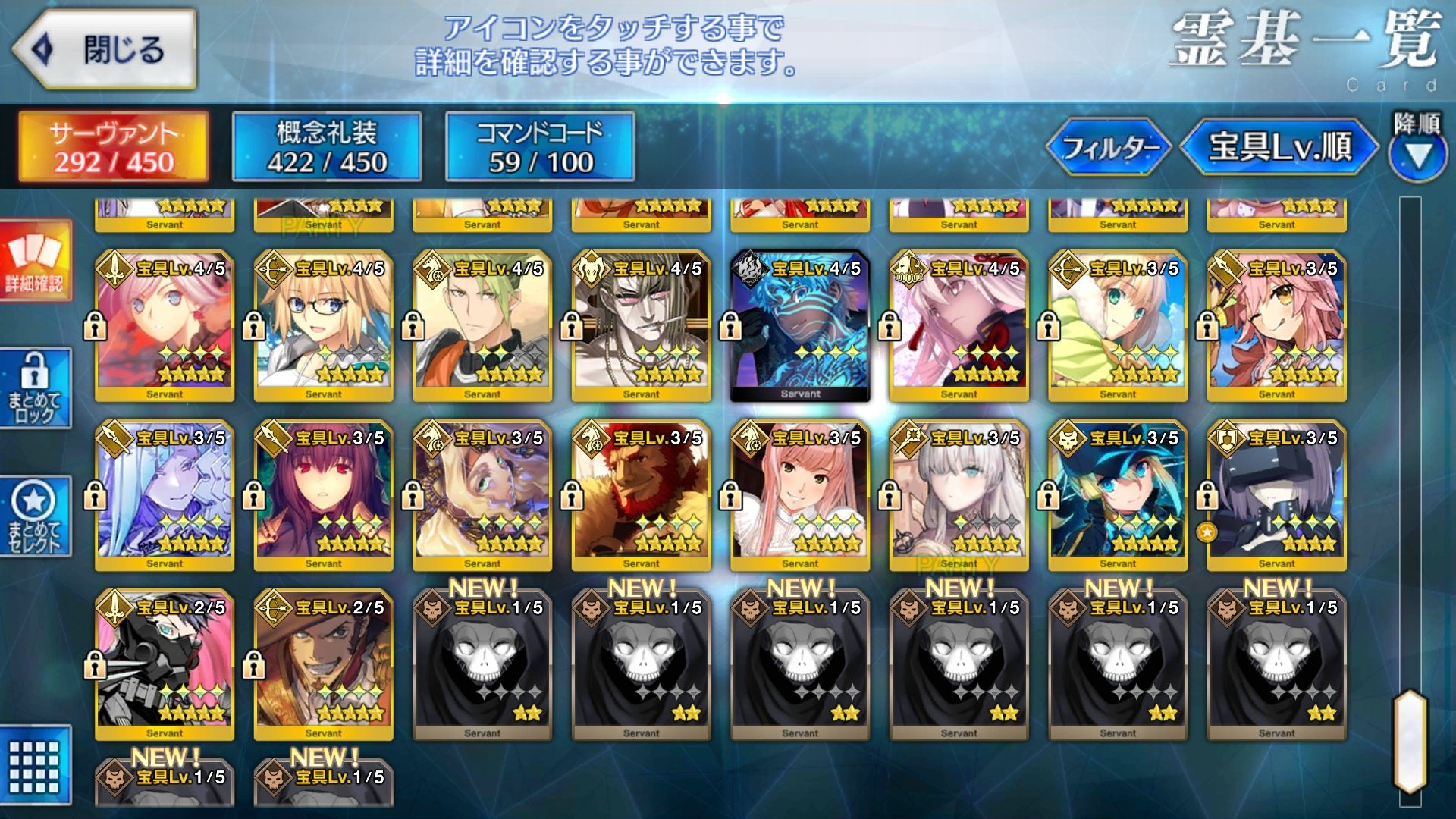 福袋以外ほぼ無課金の割に重なってるとは思うのだが、一方で宝具0も大量に