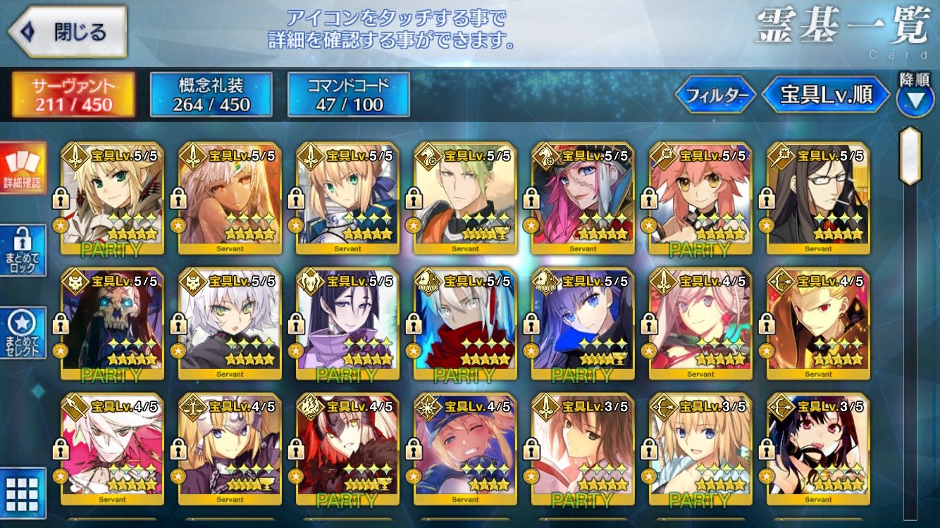 宝具レベル0なら恒常、限定ともにいっぱいいます - 10名無し2018/10/06(Sat) 11:43:45報告