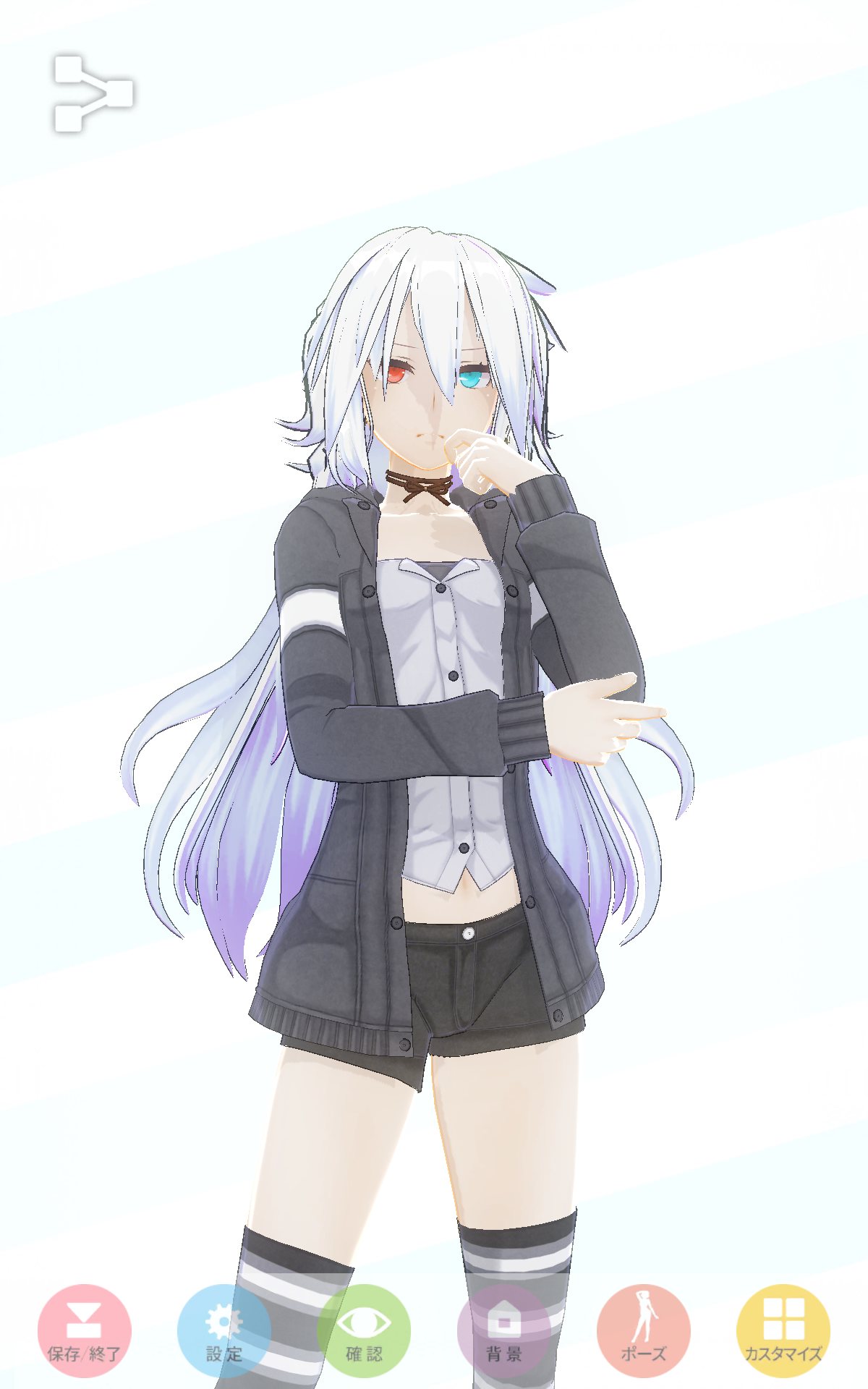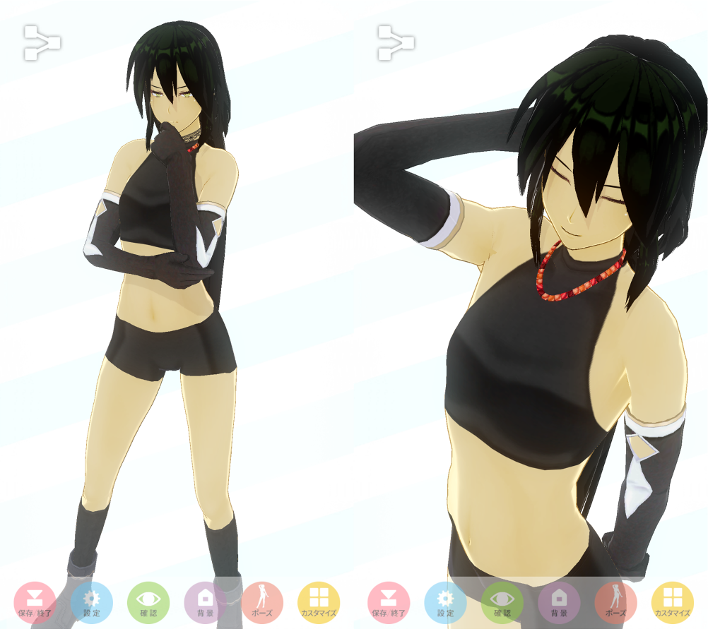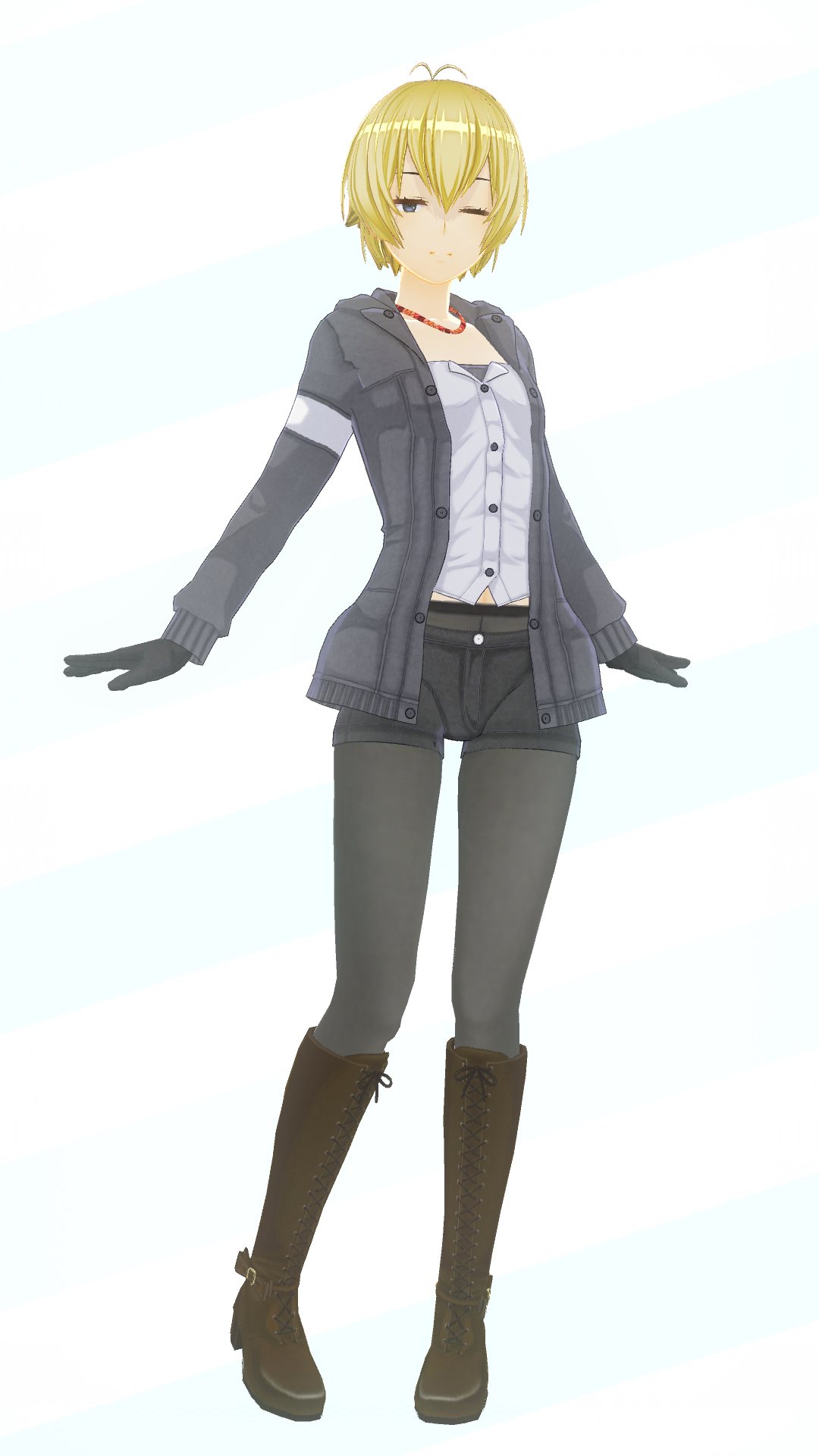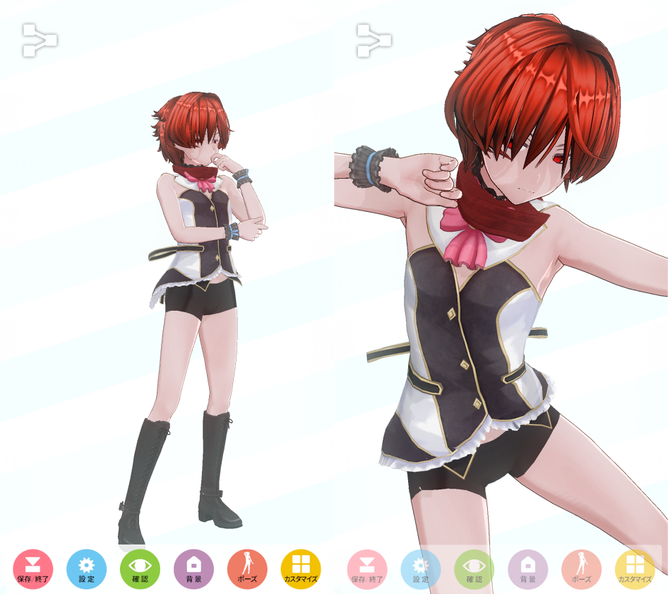 水着にすればボックスショーツ外せますがご覧の通り、今度はタイツが上がり悩ましい所ですね。ホットパンツを活かす衣装で考えてみるのも面白いかも