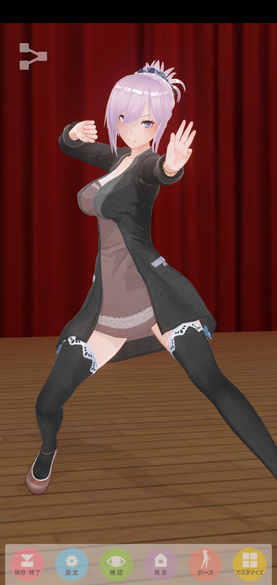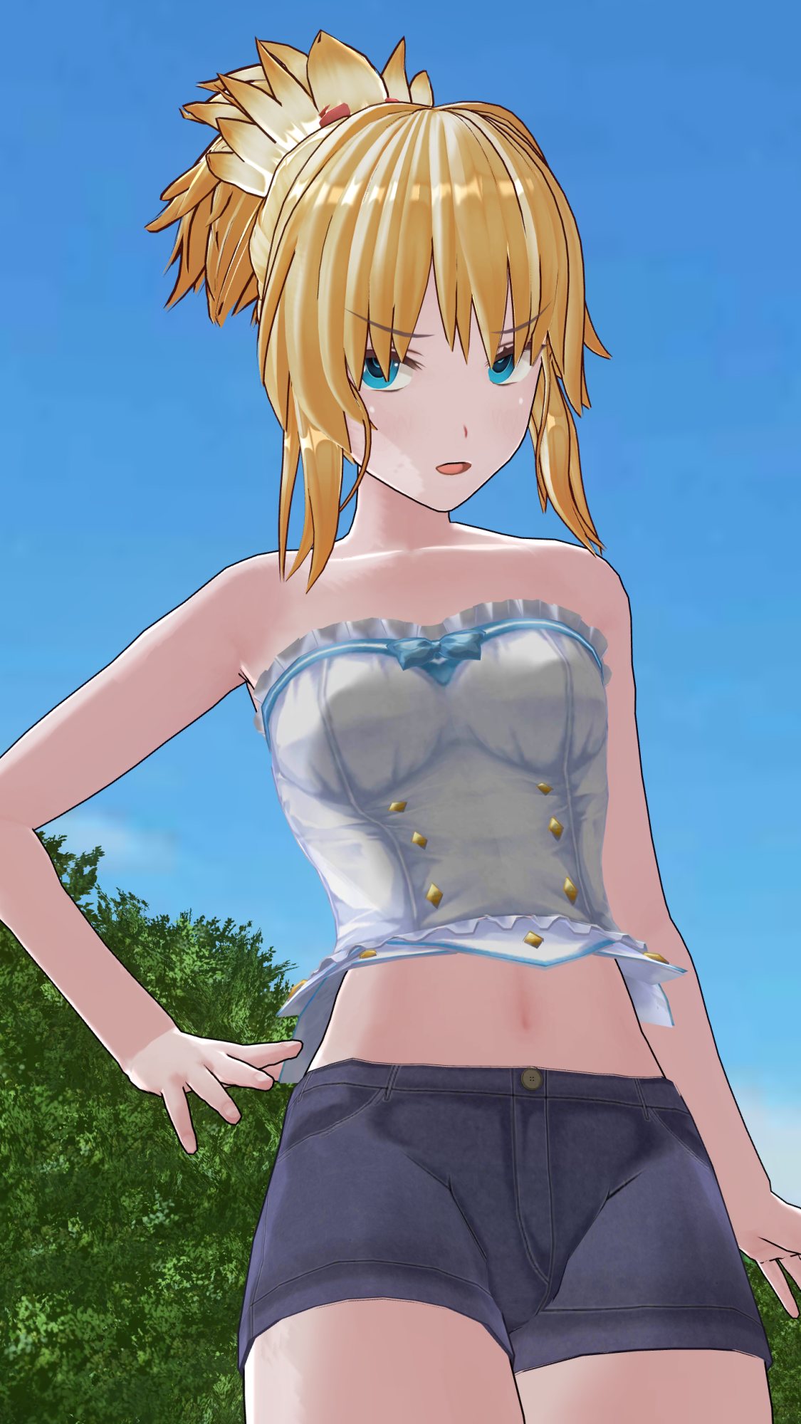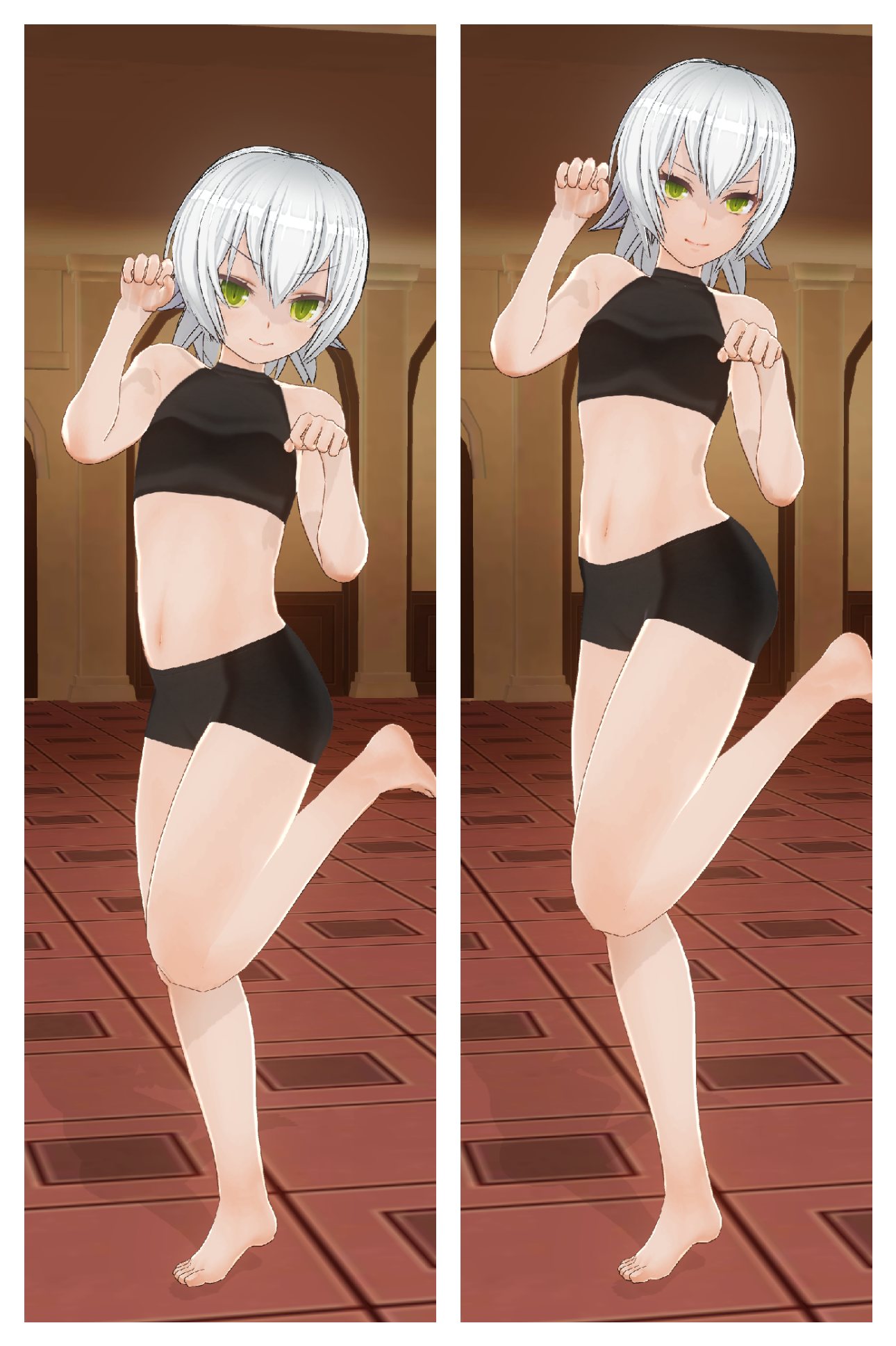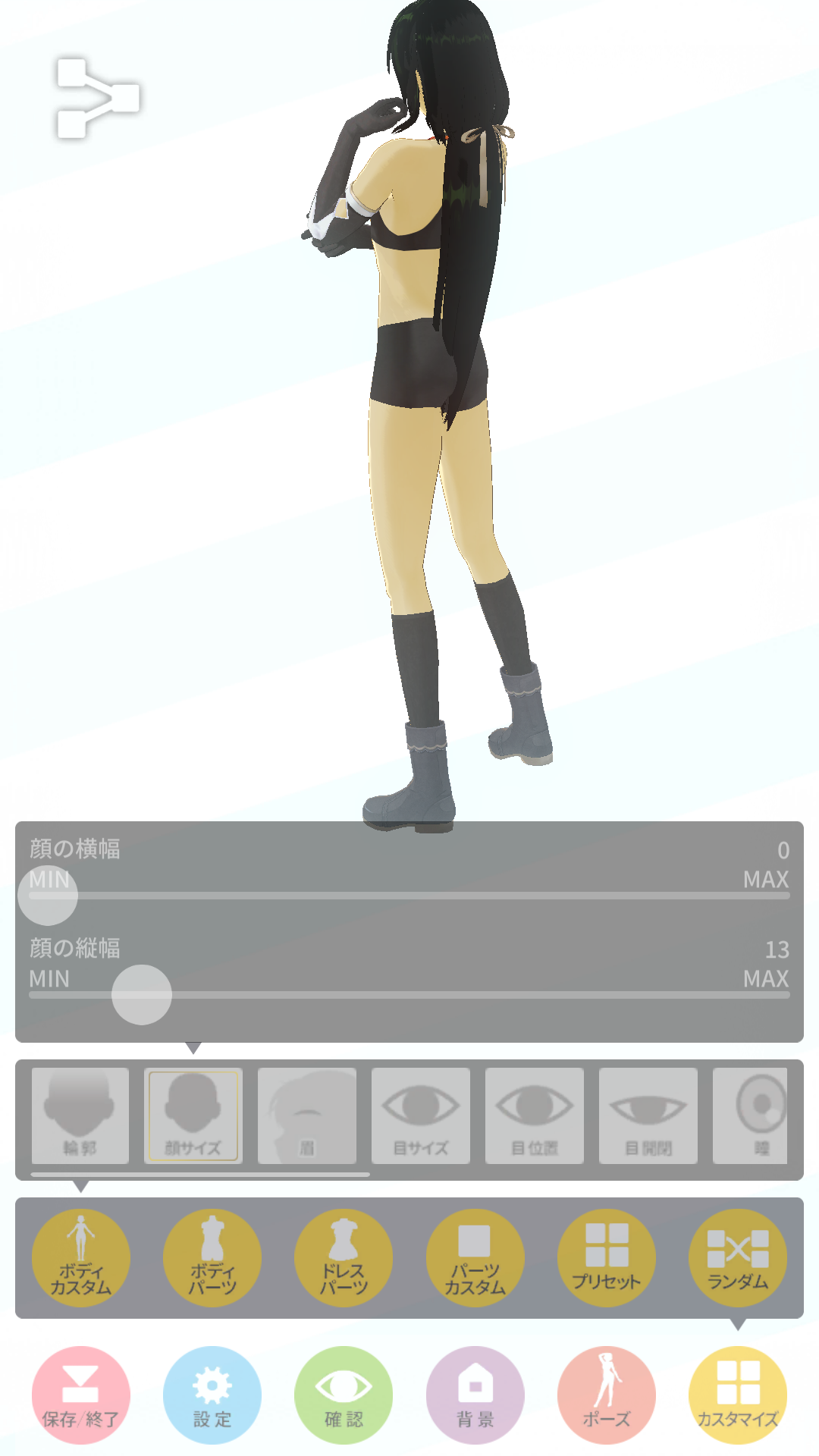 水着にすればボックスショーツ外せますがご覧の通り、今度はタイツが上がり悩ましい所ですね。ホットパンツを活かす衣装で考えてみるのも面白いかも
