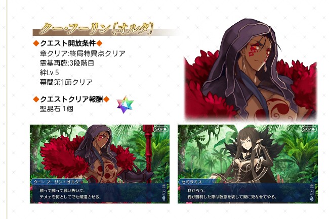 クーフーリンオルタの幕間はゲーム上だとそんな難易度高くない、むしろ同時期の幕間に比べると簡単な方なのに設定上だとやたら難易度高いなパールさんは☆4かも知れないが桜派生キャラというくくりなら☆5が既に2人もいるんだよなって