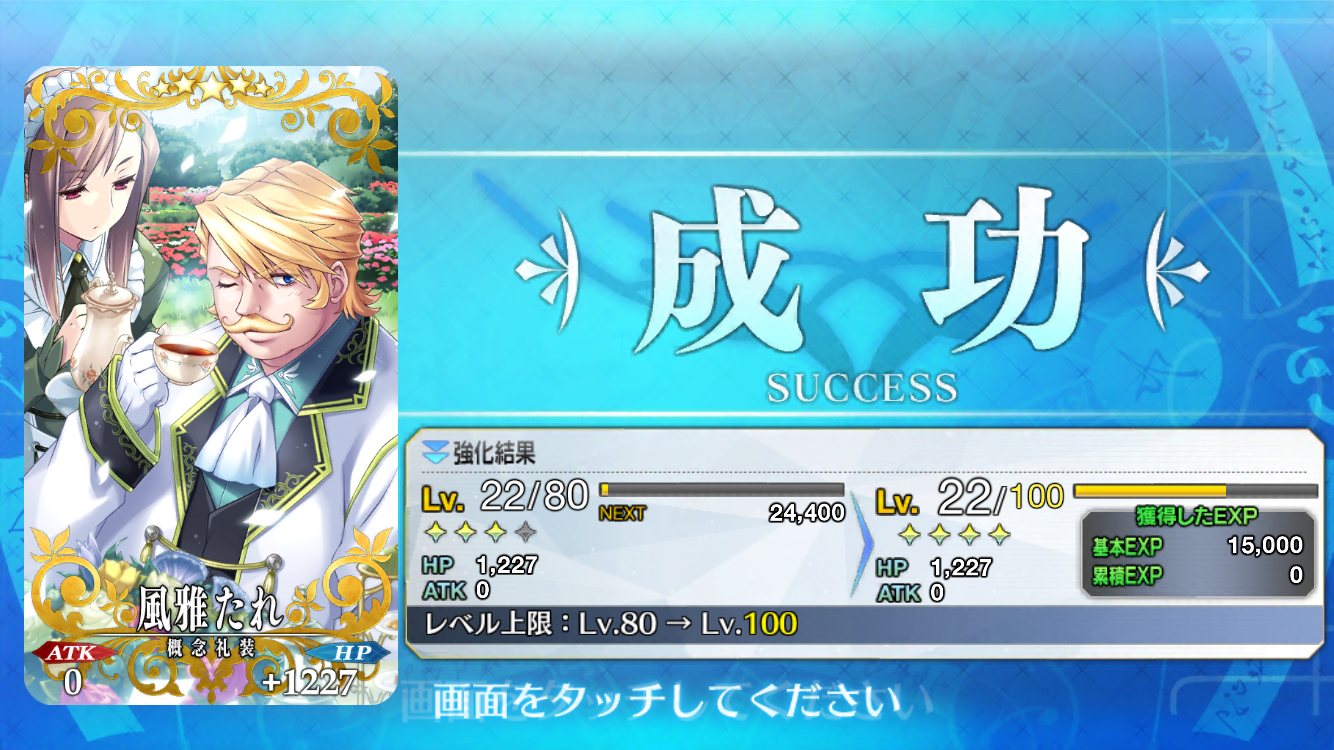 スター発生バフは段蔵ちゃんも夢があっていいよ。無事に(?)2章突破完了。心にぽっかり穴が空いた・・・貰った礼装って限凸じゃないけど、ガチャで出るの?