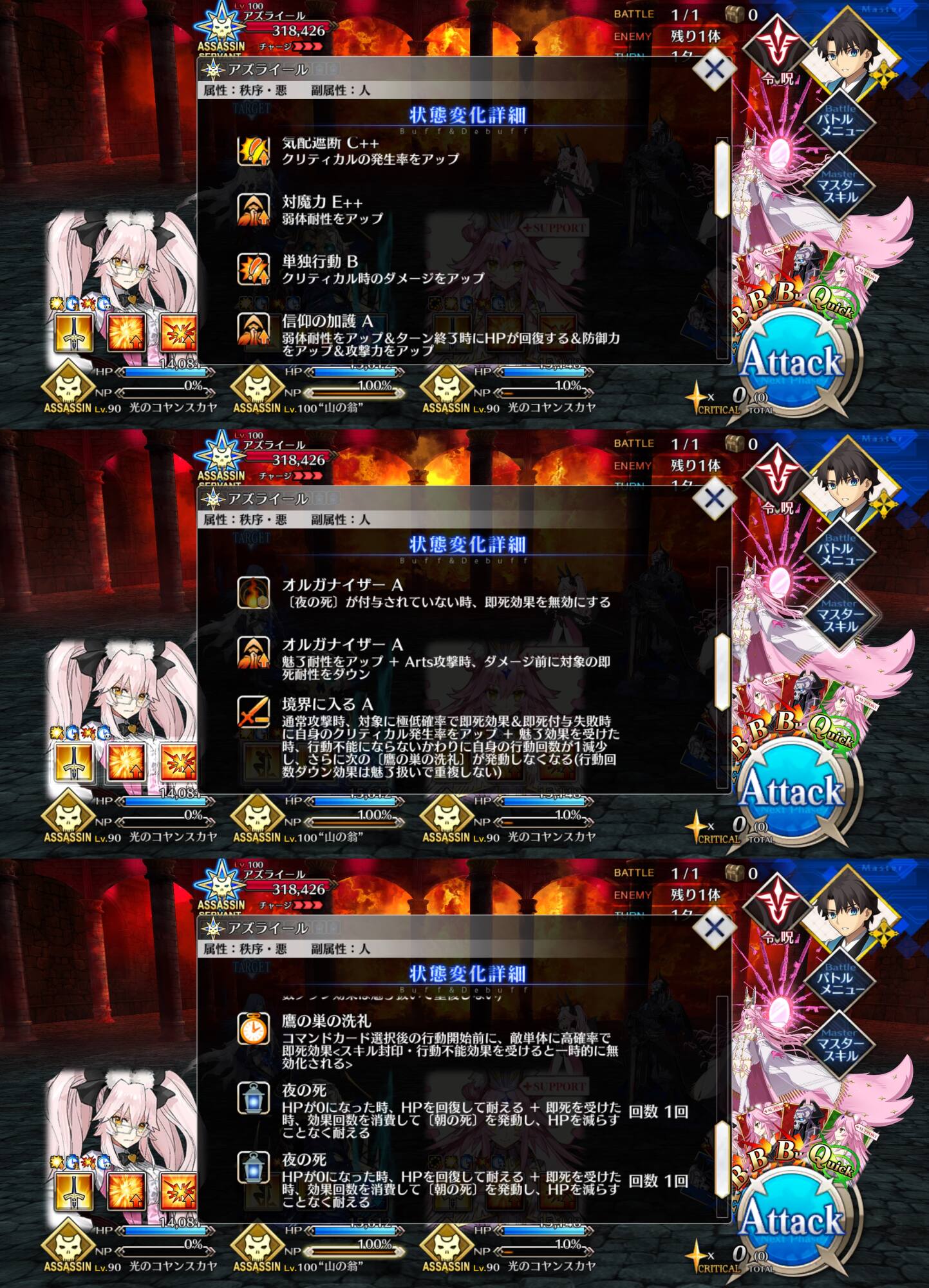 今のところ出てるハサンの身技ってこんなところかな?あと狂信者ちゃんの幻想血統かな。もしFGOにFake真アサが実装されたら、マイルームどうするんだろう
