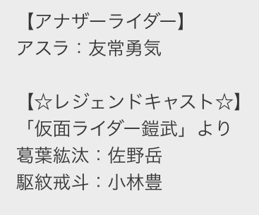 公式発表を除く児童誌バレ等はラフム語、グロンギ語等に変換してください仮面ライダーは確かに居たんだ