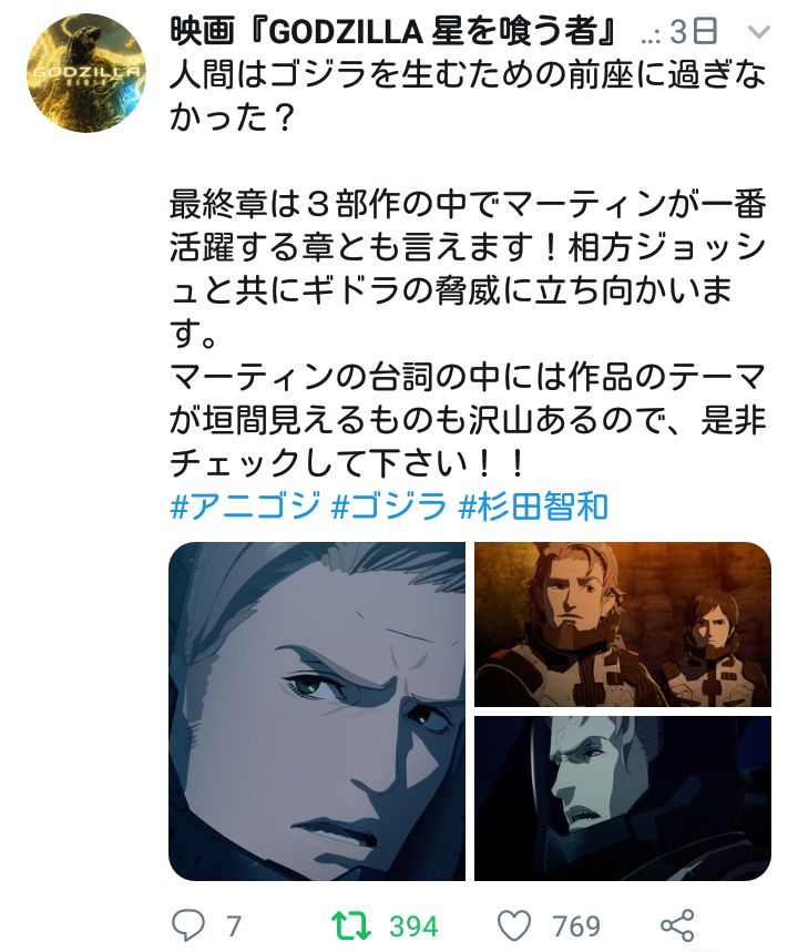 最初は1回で十分と思ったけど今は色々踏まえて見てみたいアニゴジ見てきた。言われてる程悪くはないと思った。とりあえずギドラはギャラクタスみたいなもんかね。