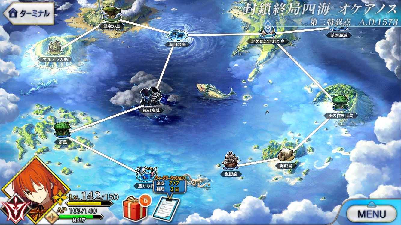 彷徨海を新たな拠点にしてそこから各ロストベルトに行けるようになる、みたいな感じになるのかねクリスマスイベの前に3章持ってきたってことは今年のクリスマスは3章で恐らく拠点構えるであろうメインシナリオ時空で進行する感じなのかな?