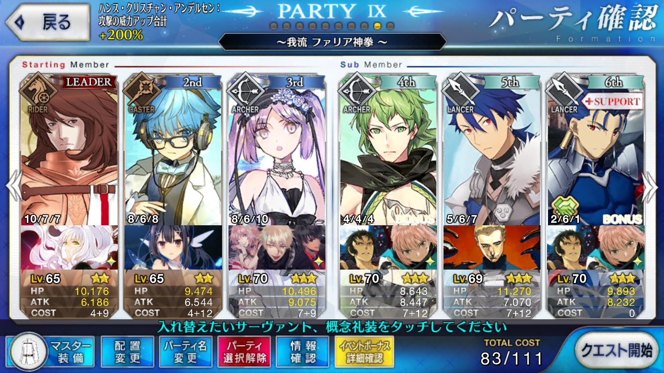 よく倒れてしまうって方のサポートはできないけどジキハイとかはバスター強化しつつクリティカル用の星が出せて良き復刻明治維新の魔太閤戦で初めてアンリを起用してみたけど、コイツ難しいな